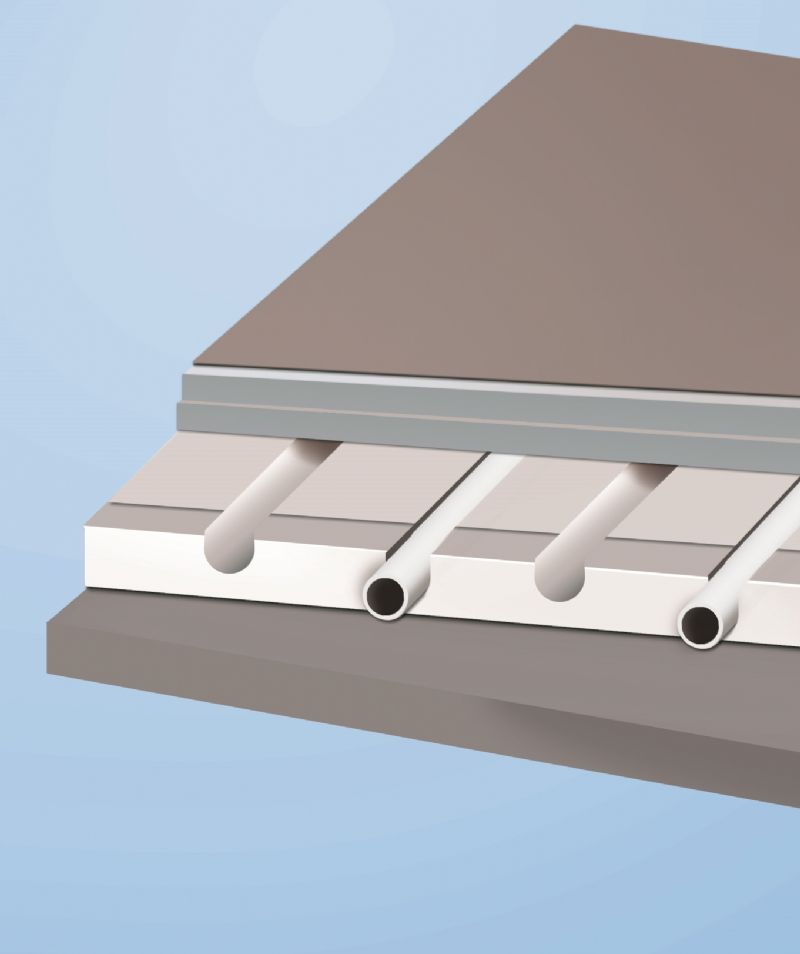 - korte bouwtijd en snelle temperatuurregeling door droge, lage, lichtgewicht vloeropbouw
