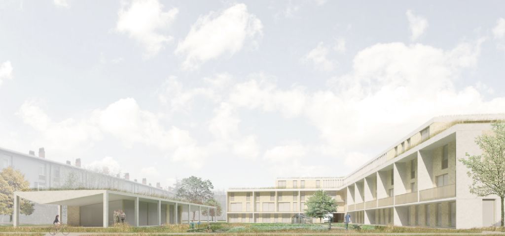 Ons project dat voorziet in 34 woningen in een Community Land Trust in de wijk Meulestede in Gent. Los van het onconventionele financiële model waarbij men de grond niet overneemt als eigenaar, is het project zo opgebouwd dat het binnen een onconventionele schakeling – met tal van voordelen - van woningen toch conventioneel wonen toelaat. Het ontwerp is net als ons project voor de Bogerse Velden in Lier een oefening geweest in hoe we met ons project meerwaarde kunnen genereren voor de omgeving. Geen enkele ontwerpbeslissing is hierbij lukraak.