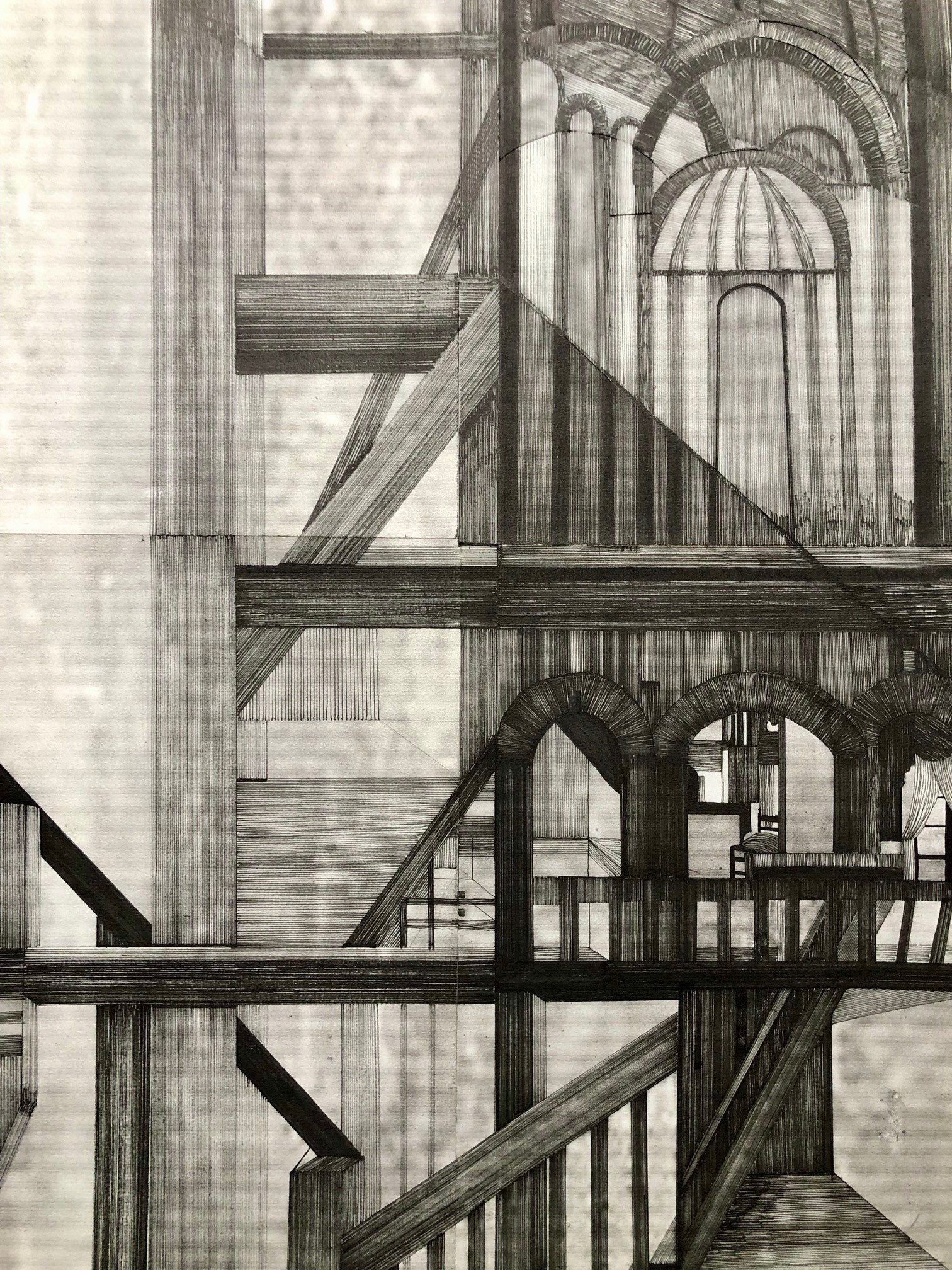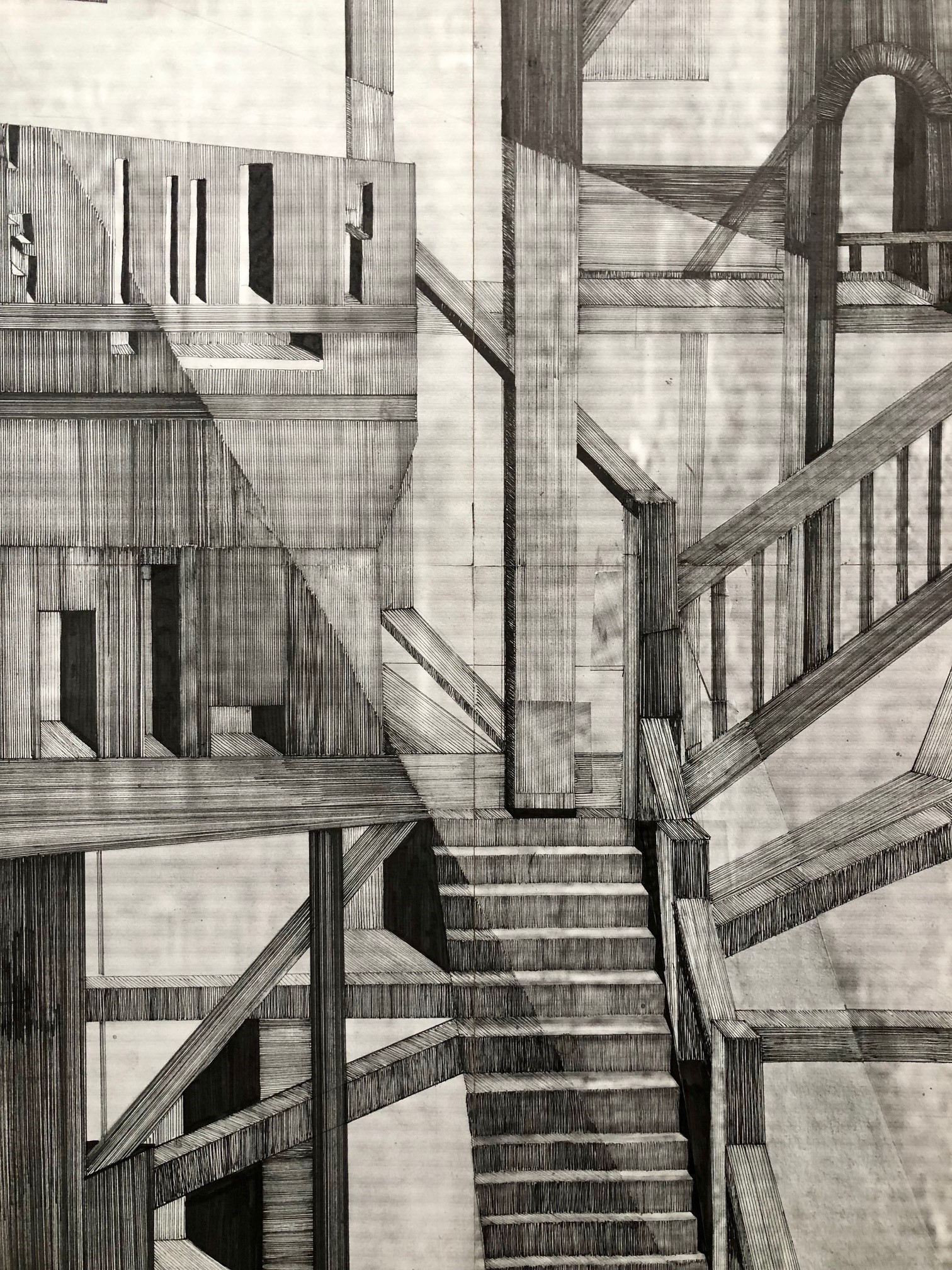 Mijn masterproef met als titel 'Redrawing the Town. Remembering the Ship. Resetting the Time.'. Mijn laatste project van de opleiding is een mooie samenvatting van de zoektocht naar het type architectuur dat mij fascineert. Dit komt mede doordat het onderwerp van mijn masterproef niet op voorhand was vastgelegd, maar geleidelijk aan is ontstaan door de vele conversaties met mijn promotoren. Deze conversaties gingen zowel over interpretaties van architectuur uit mijn eigen omgeving, op reis en thuis als van grote meesters uit de geschiedenis. Sinds het begin van de opleiding zijn aquarel- en potloodtekeningen mijn manier van communiceren geweest. Die schetsen hadden steeds een duister en dromerig narratief waardoor een tekening op schaal soms uitbleef. Het is pas tijdens dit laatste semester dat ik het vertrouwen heb ontwikkeld om die droomachtige architectuur, die in mijn gedachten ronddwaalt, om te zetten in iets tastbaar aan de hand van het architecturale detail en een wisselwerking van tekeningen op verschillende schalen.
