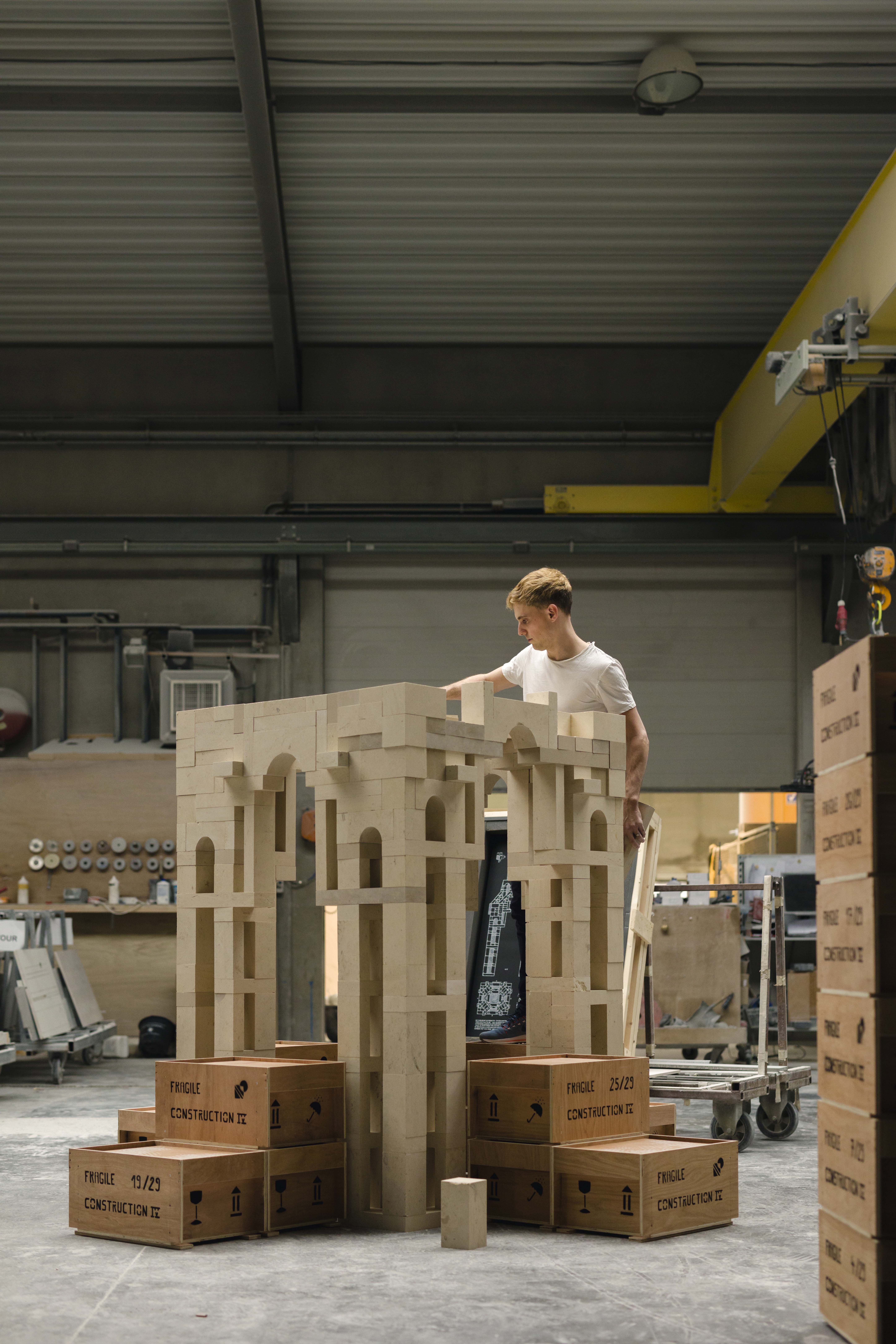 “Ik ben trots op mijn Construction Series, een reeks grote architecturale beeldhouwwerken in losse blokken natuursteen, waarvan ik er al zes jaar lang één per jaar produceer. Een ander project waar ik momenteel veel tijd en energie in stop is de scenografie van de opera ‘Banket’ voor Opera Vlaanderen. Het is fantastisch om zo interactief en op zo’n grote schaal met mijn werk bezig te kunnen zijn.”