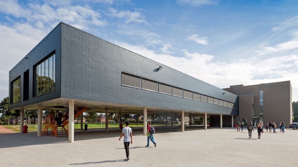 Het nieuwe schoolgebouw voor de afdelingen kunst en wetenschap op campus Mater Dei in Overpelt. Dit project is een goed voorbeeld van mijn stelling dat creativiteit soms ontstaat uit de beperking. In dit geval was het bouwprogramma tamelijk ambitieus, het budget eerder uitdagend en de stabiliteit van de ondergrond een zorgenkind. Maar door creatieve keuzes te maken, in combinatie met technische kennis, realiseerden we een comfortabel en opvallend hedendaags gebouw, dat ook nog eens energiezuinig is. En dat voor een bouwkost onder € 1.000 /m² excl. btw !