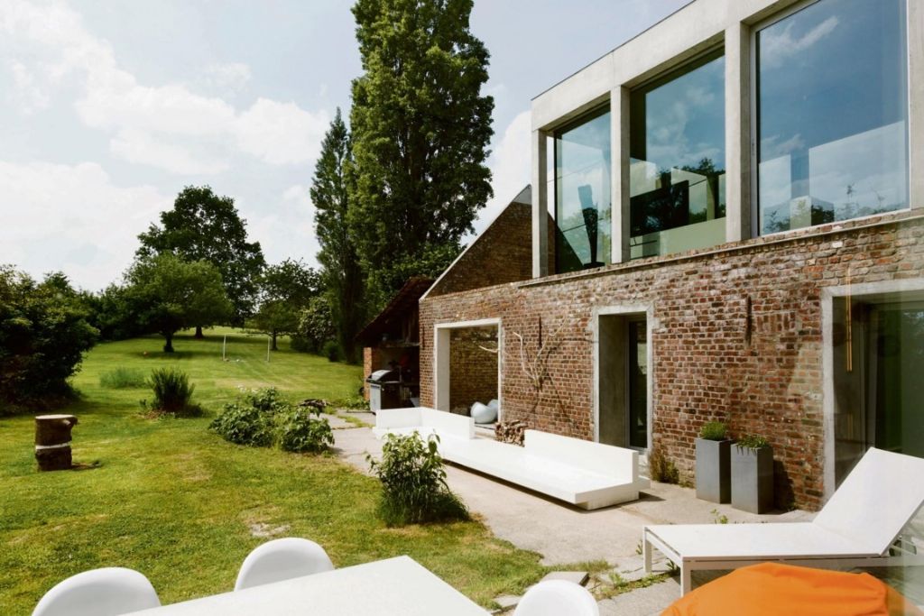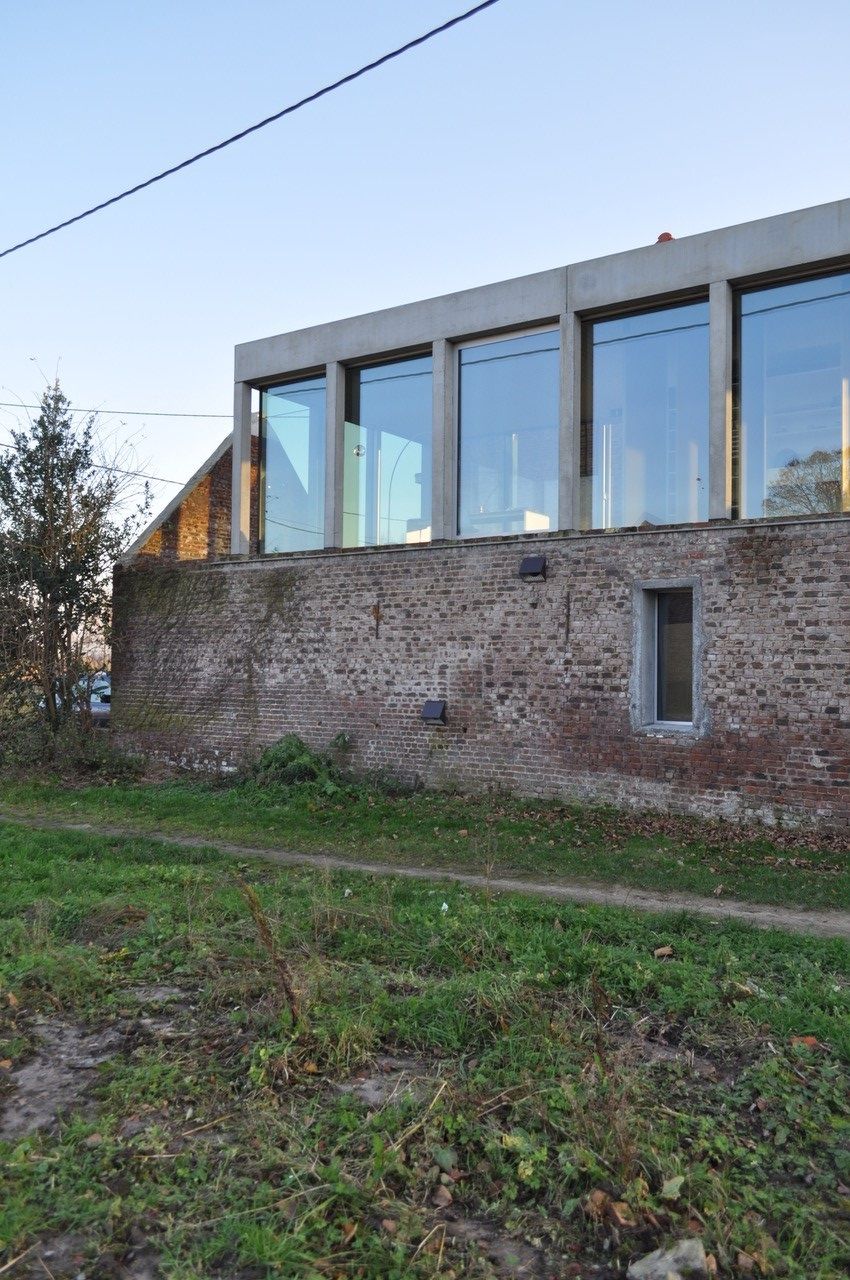 De ‘schuurwoning’ in Dilbeek ligt ons nauw aan het hart. De intrinsieke kwaliteiten van de schuur werden geformuleerd en als meerwaarde gecombineerd met een nieuw volume. De keuze voor beton als constructie en esthetiek resulteerde in een rationele gevelsystematiek die contrasteert met de oude bakstenen muren. De rauwe uitkomst geeft karakter en integreert zichzelf naadloos in zijn omgeving. In combinatie met de verbouwing van de bestaande woning behoudt de site haar charme ondanks de grote veranderingen. Sterker nog, het resultaat is een genereuze woning die door zijn ruimtelijkheid en leefbaarheid volgens ons een perfecte vertaling is van zijn inherente kwaliteiten. Bijkomend was dit een voorbeelddossier op vlak van samenwerking met de opdrachtgevers. Door wederzijds vertrouwen bleef het oorspronkelijke concept volledig overeind. Iets dat tegenwoordig ook moeilijk blijkt ondanks het feit dat het zo cruciaal is voor een bouwproces.