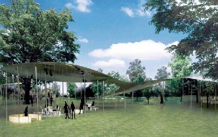 Video over the Serpentine Gallery Pavillion in Londen, ontworpen door architectenbureau Sanaa.