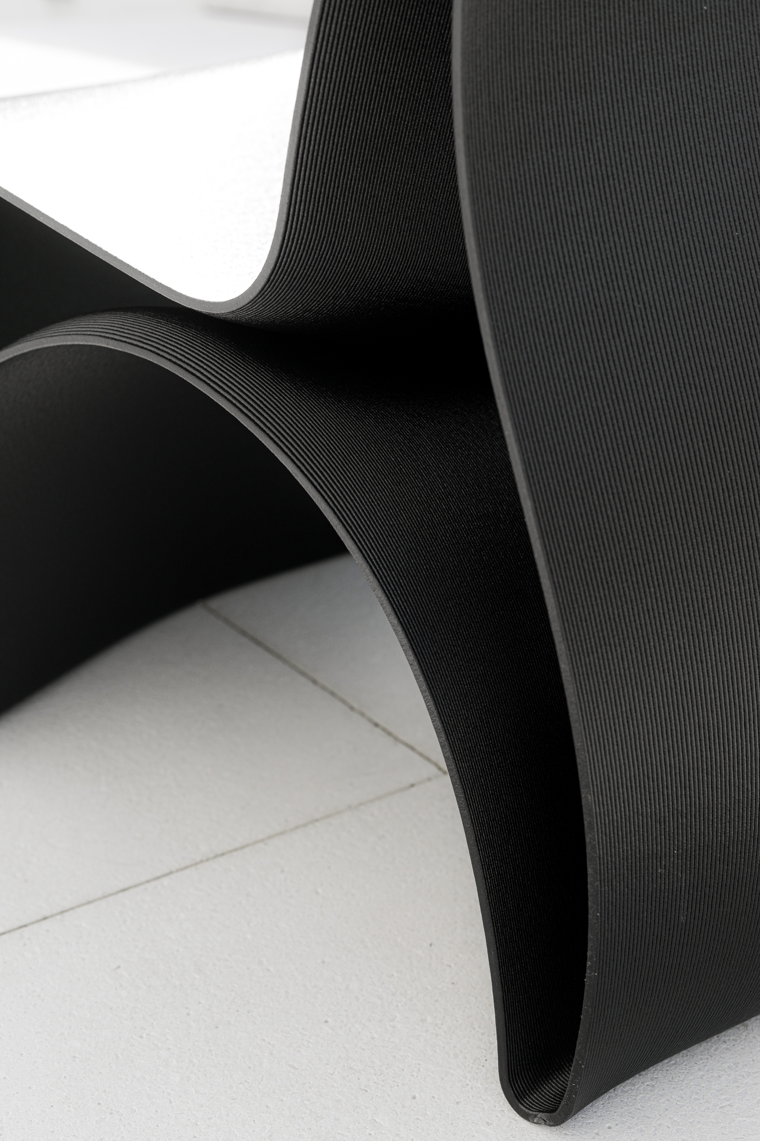 \"De Strat-collectie en de 0.6-stoel. De Strat-collectie omdat het een antwoord biedt op vele uitdagingen zoals; duurzaamheid, hergebruik van lokaal materiaal, recycling, laag energieverbruik, circulaire economie en verantwoordelijke producten met een concrete na-levenscyclus. De 0.6-stoel verlegt de grenzen van het materiaal door een extreem dunne en lichte stoel te maken met een minimum aan materiaal. Het was een technische uitdaging en in overeenkomst met de waarde van vandaag.\"
