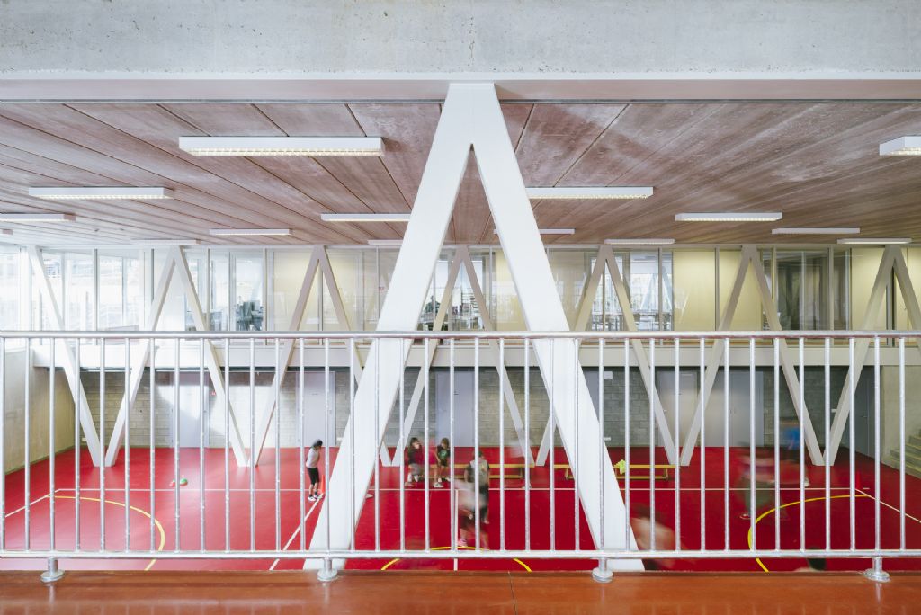 We zijn erg blij met ons eerste publieke project. Het project PSBO Building, een opdracht die we verkregen hebben via een Open Oproep van de Vlaams Bouwmeester, werd dit jaar opgeleverd. Flexibiliteit en eenvoud van bouwwijze zijn één van de belangrijke pijlers die de indeling van het gebouw bepaald hebben. De speelterreinen en de sportzaal vormen als open ruimtes de ruggengraat van het schoolgebouw. De sportzaal is opgevat als atrium die visueel en programmatisch wordt verbonden aan de publieke functies, waaronder een polyvalente zaal.