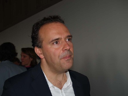 Michiel Riedijk geeft voor de camera van www.Bouwenwonen.net en www.architectura.be een korte toelichting bij het ontwerp van het MAS (links) en legt uit wat Nederlandse en Vlaamse architecten volgens hem van elkaar kunnen leren (rechts).