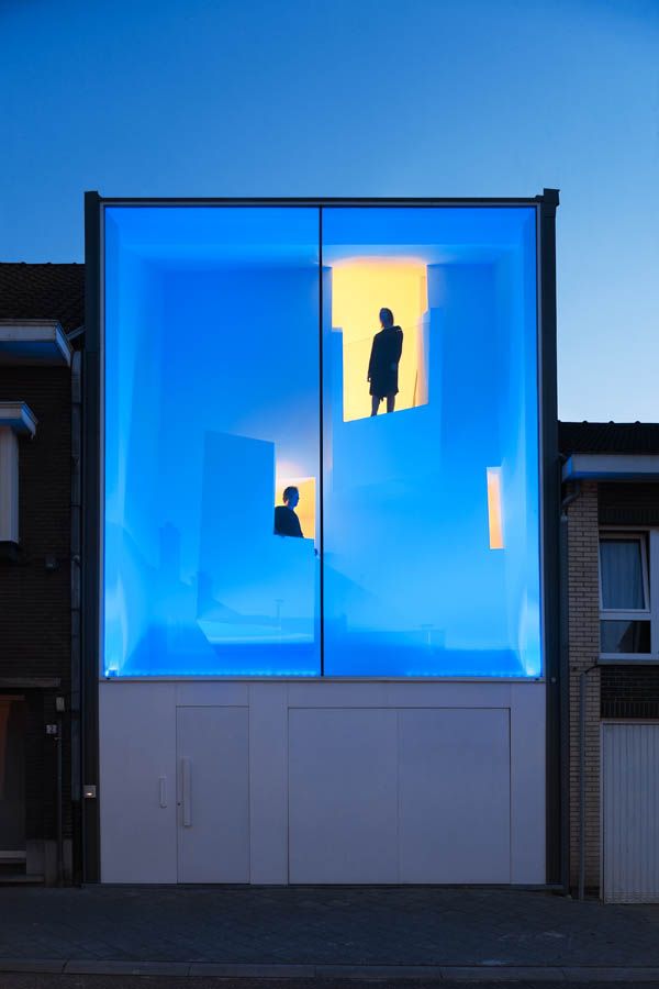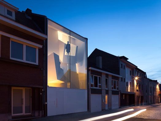 Bij dit huis dat hij ontwierp in Bilzen, wordt de link tussen architectuur en hedendaagse beeldhouwkunst visueel erg duidelijk. Tussen de rijhuizen lijkt als het ware een sculptuur te verrijzen die mensen huisvest.