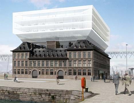 Persoonlijk was ik erg onder de indruk van het ontwerp voor de renovatie en uitbreiding van Het Havenhuis door a2o-architecten. Helaas heeft hun ontwerp het niet gehaald, maar ik vind het concept prachtig. Het ontwerp bouwt letterlijk voort op de bestaande architectuur door dit er bovenop te spiegelen. De hedendaagse toevoegingen contrasteren met de historische elementen, maar zorgen samen voor een nieuwe identiteit en eenheid in gebruik en organisatie.