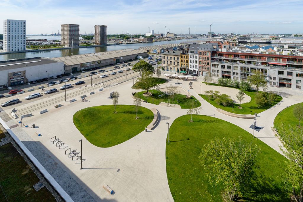 Het Cadixplein – of Schengenplein zoals het nu officieel heet – is het nieuwe wijkplein voor de Cadixwijk in Antwerpen. Fase 1 van dat project, het deel tussen het Stedelijk Lyceum en Kattendijkdok Oostkaai, werd ondertussen uitgevoerd. Maar we kijken erg uit naar de uitvoering van het tweede deel van het plein. Dat is het deel tussen Kattendijkdok Oostkaai en het dok zelf. Een gedeelte van de bestaande loodsen zal worden behouden en ingericht als overdekte buitenruimte. Het park/plein zal door middel van een ponton doorgetrokken worden tot in het water van het dok. Inmiddels hebben we ook de opdracht gekregen om de hierop aansluitende New Yorkkaai te ontwerpen. Zo zullen we uiteindelijk grote groene mensvrije zones kunnen realiseren op de doorgaans erg versteende oppervlaktes van het Eilandje.
