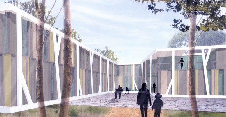 De Hertogloges in Lommel is het eerste project dat PLUS office via een wedstrijd binnenhaalde. (Ontwerpteam: Bart Mahieu – Wendy Vandenberk – Nathan Ooms – Ward Verbakel) (Foto: Studio Claerhout)