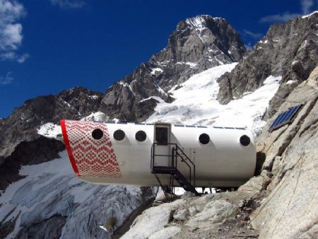 De nieuwe Monta Rosa-hut in Zwitserland, ontworpen door architect Andrea Deplazes. Alleen al omwille van de locatie op 2883 meter boven de zeespiegel : je komt er uitgeput toe en snakt naar een bed en eten en wordt daarenboven geconfronteerd met een overdonderende schoonheid en een oorverdovende stilte. Het innovatieve gebouw – ook wel rotskristal genoemd – genereert meer dan 90 procent van de noodzakelijke energie. De hut is bedekt met een fonkelende aluminium huid en beschikt aan de zuidzijde over een geïntegreerd fotovoltaïsch systeem.