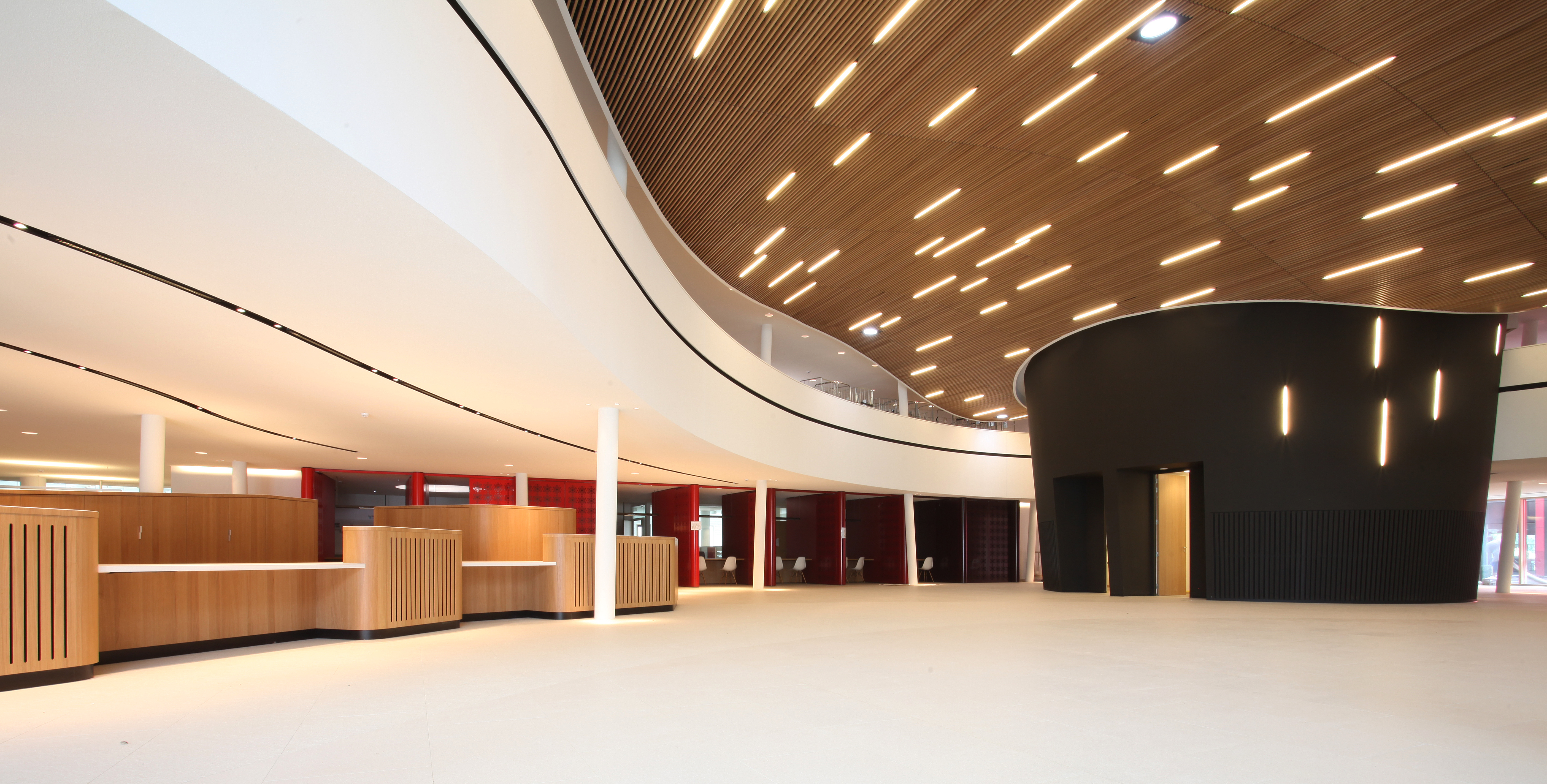 \"Wij proberen ons altijd te beperken tot een aantal materialen, maar werken toch heel graag met hout. We bekijken ook steeds wat er met hout allemaal mogelijk is. We kunnen bijvoorbeeld hout in combinatie met staal of beton gebruiken, maar ook verkoold hout of houtstructuren als constructie- of afwerkingsmateriaal. Daar zit vaak een uitdaging aan vast omdat je met restricties zit. Het is echt de grenzen opzoeken en aftasten.\"