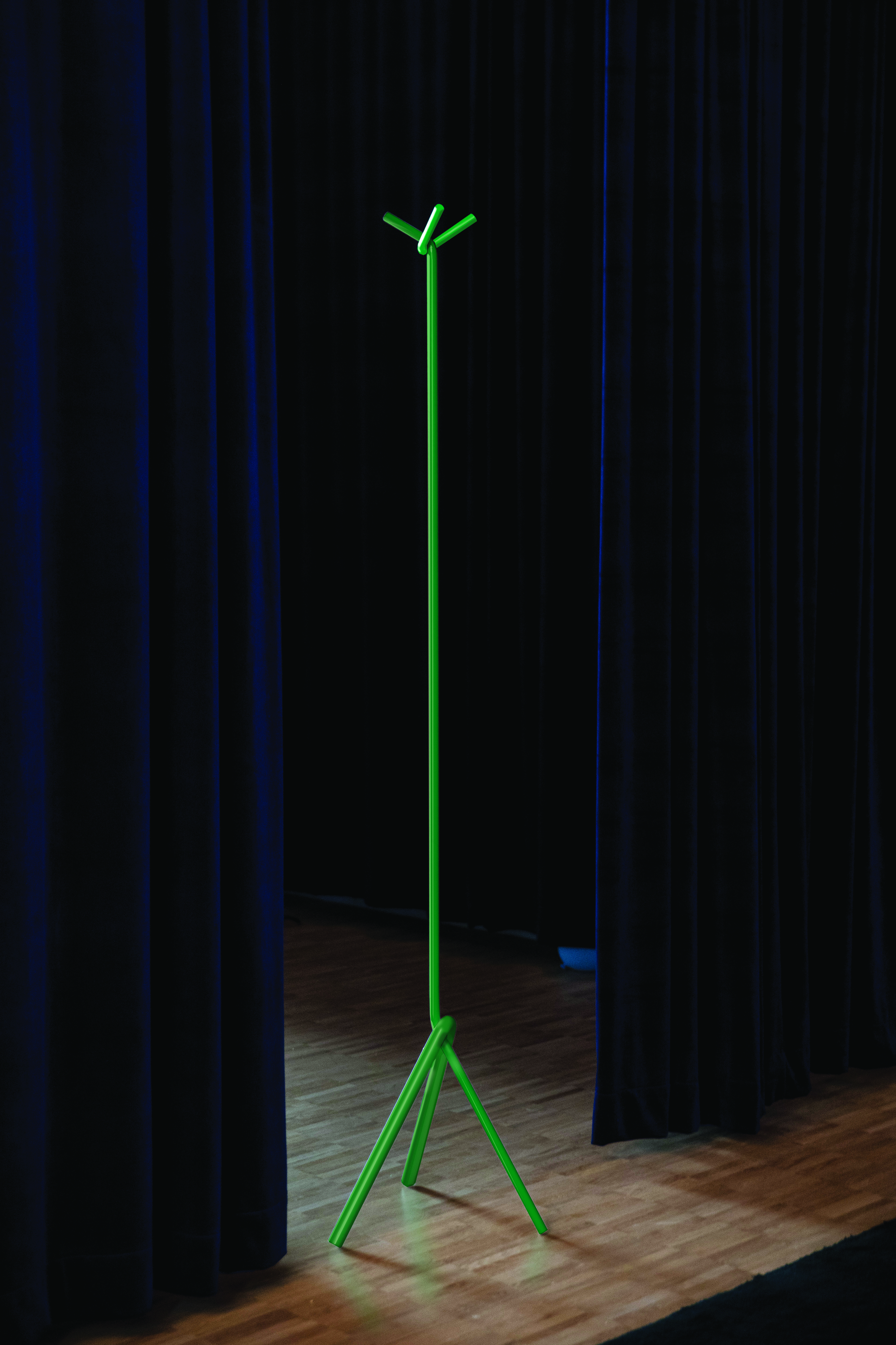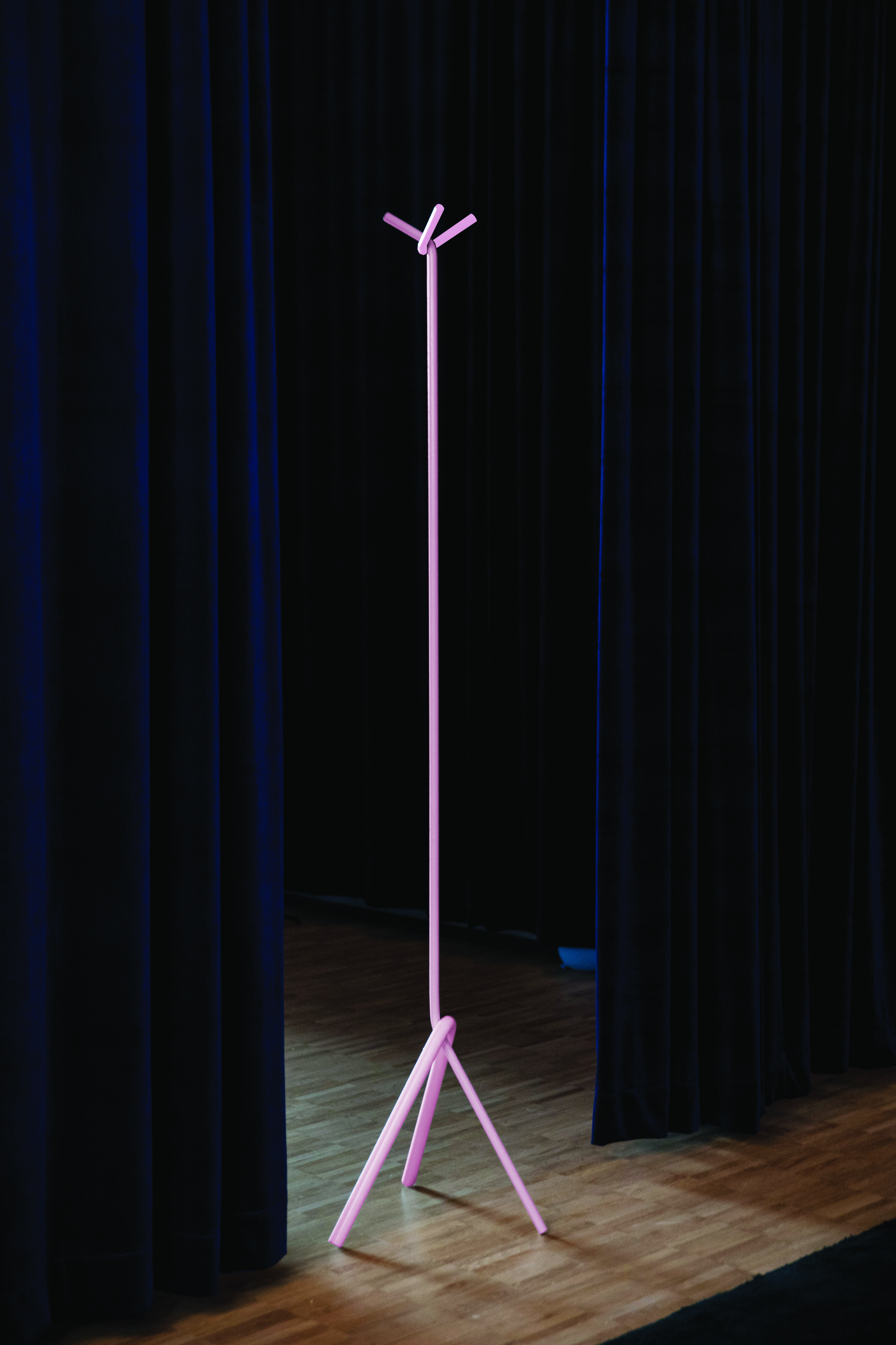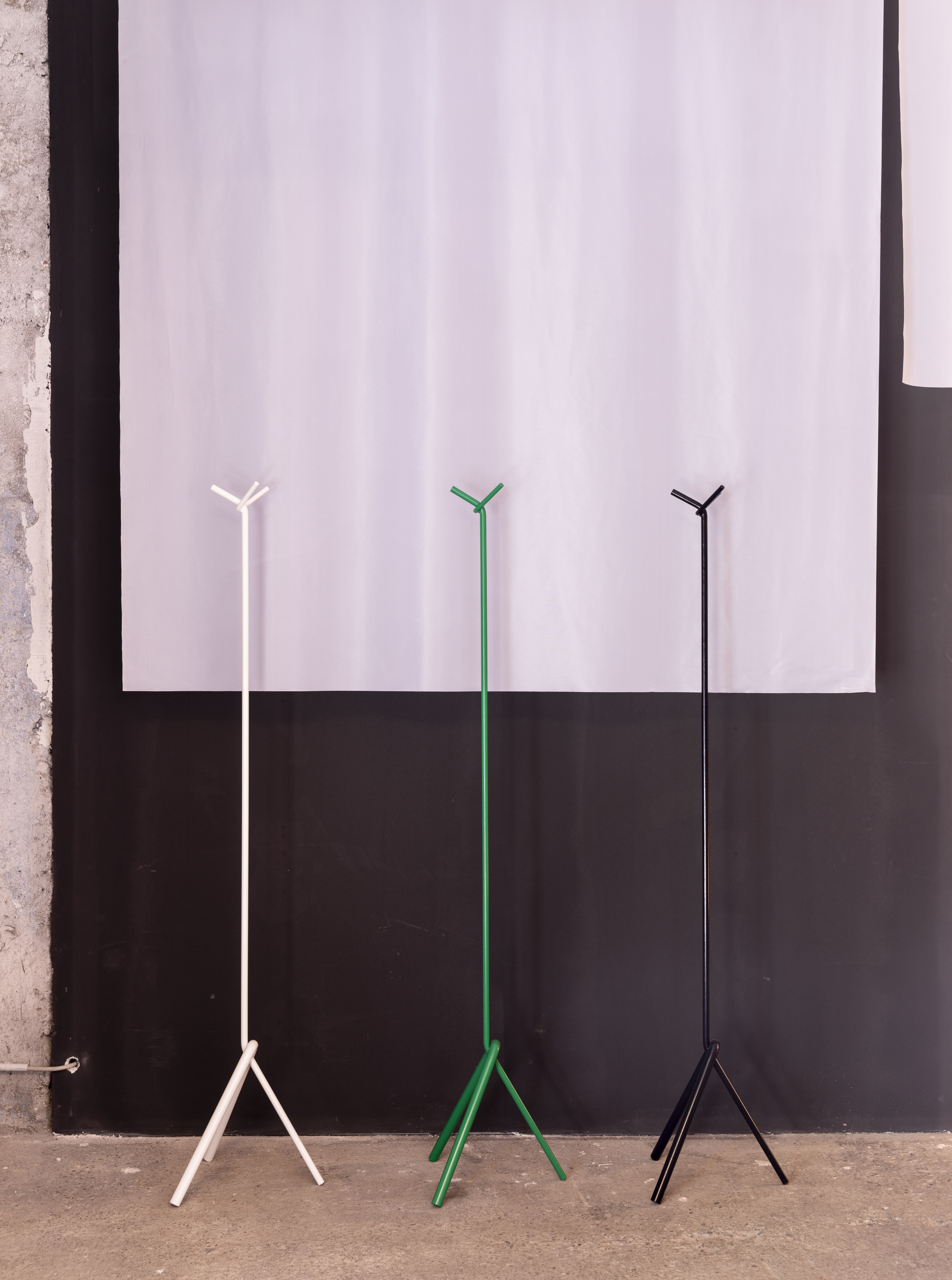 “Een maand geleden bracht ik samen met Lensvelt een staande kapstok uit, opgebouwd uit gebogen stalen staven. Het object reduceert het archetype van Thonet tot een minimum. Tegelijkertijd is het ambigu doordat het ook speelsheid in zich draagt. De kapstok is bedacht voor plekken waar vaak niet de ruimte is voor een aparte vestiaire of zelfs een inkomhal. Zo past het in een living. Anderzijds is het leuk om ze per twee of drie te groeperen in grote ruimtes.”