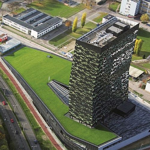 Door zijn uitzonderlijke waterdichtheid, hoge en langdurige betrouwbaarheid en uitzonderlijke druksterkte wordt het FOAMGLAS® Compactdaksysteem steeds vaker gebruikt voor waterretentiedaken. Zoals in het gebouw van het Europees Geneesmiddelenbureau (EMA) op de Zuidas in Amsterdam.
