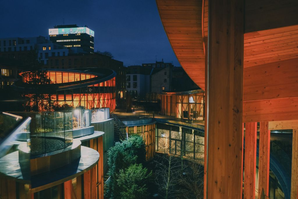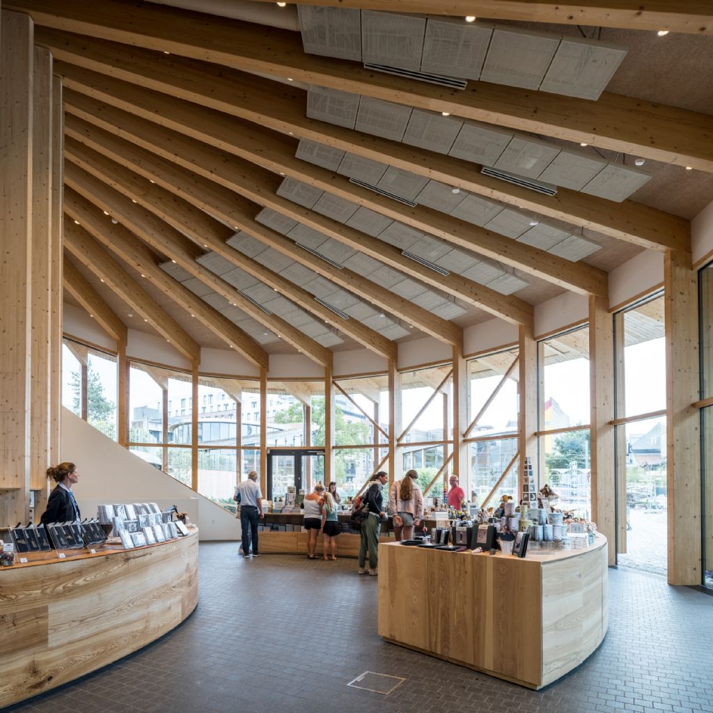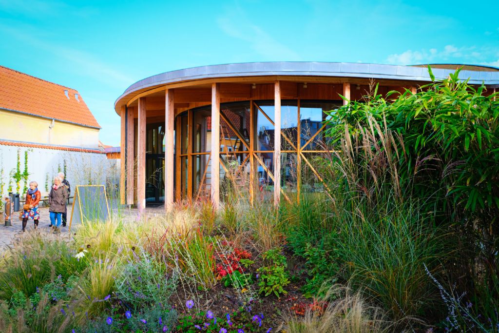 De nieuwe bovengrondse gebouwen beantwoorden aan de bestaande schaal van het geboortehuis van H.C. Andersen, en aan de omringende historische context. Hun gevels zijn een moderne interpretatie van de oude Noord-Europese traditie van vakwerkhuizen. Expressieve houten constructies van massief hout zijn omsloten met glas, waardoor een lichte en delicate expressie ontstaat, en de gebouwen als paviljoens in de tuinen verschijnen. Het hout in het interieur is van de Deense fabrikant Dinesen.