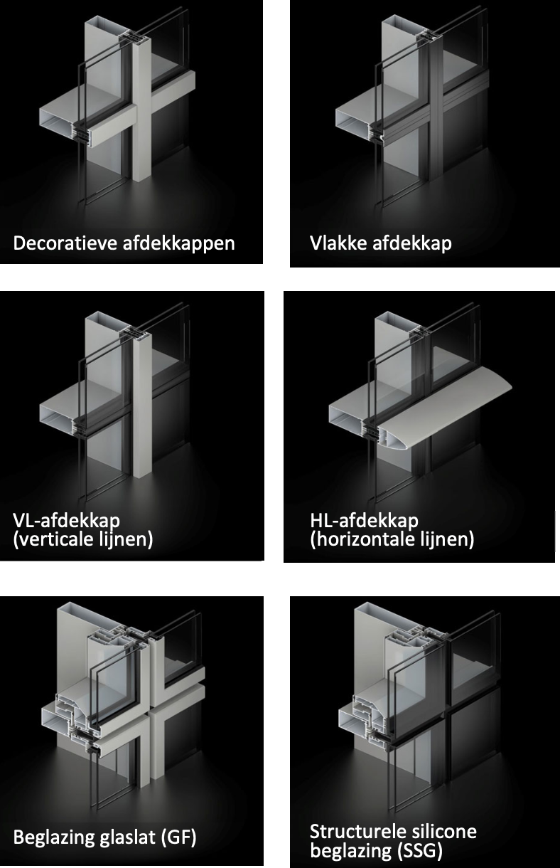 TENTAL biedt een brede waaier aan esthetische oplossingen en komt tegemoet aan de specifieke eisen van elk project: van het ontwerp met afdekkap tot het ontwerp met semi- afdekkap, dat de horizontale lijnen van de regels of de verticale lijnen van de stijlen benadrukt, tot de vlakke afdekkap, die een glad uitzicht van de profielen en de beglazing creëert. Voor deze configuraties is een breed scala aan designs beschikbaar. Ook de afwerking met structurele silicone beglazing is mogelijk, om zo volledig vlakke gevelsystemen te creëren zonder zichtbare profielen van buitenaf. Voorts is er de GF-afwerking, waarbij het glas is bevestigd door middel van aluminium glaslatten die een zichtbaar kader vormen. Dit kan bovendien ook worden toegepast voor hellende glazen daken. Alle profielen kunnen daarenboven worden aangepast in verschillende kleuren en texturen: van metaaltinten tot een breed gamma lakken, geanodiseerde satijnafwerkingen. Een combinatie met houten structuurprofielen aan de binnenzijde van de gevel behoort tevens ook tot de mogelijkheden.