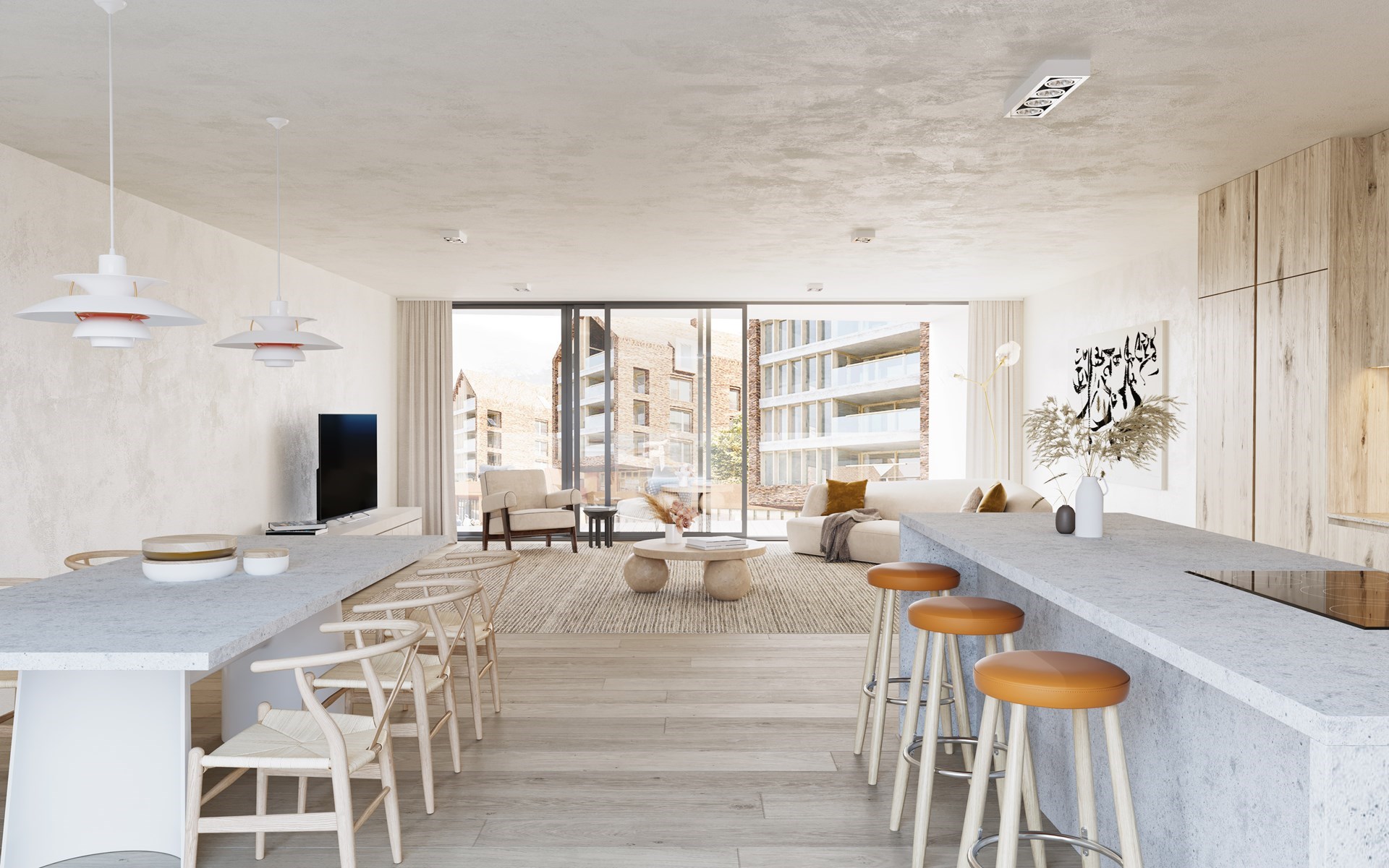 Aarschot is een stad in volle ontwikkeling. Met ‘De Torens’ krijgt de Parel van het Hageland er alweer een prachtige nieuwe wijk bij. Op de voormalige fabriekssite van wijnbottelarij Geens, gelegen tussen de Leuvensesteenweg en de achterliggende Sint-Niklaasberg met de historische Orleanstoren, verrijzen tegen 2024 in totaal 249 appartementen en 8000 m² kantoor- en commerciële ruimte. Deze mix van wonen, werken en winkelen wordt aangevuld met een ruime ondergrondse parking, kwalitatieve publieke ruimte en een fraai landschapspark. Het ontwerp is van de hand van a2o architecten, het Britse DRDH Architects en het Italiaanse C+S Architects.