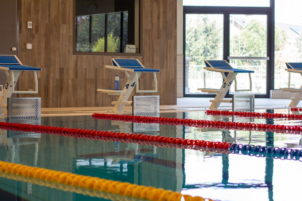 Er is gekozen voor het principe van intelligent stapelen waarbij cafetaria en sportdienst zich op de verdieping bevinden en het zwemmen op het gelijkvloers. De cafetaria, voorzien van grote raampartijen, bevindt zich zo overkijkend strategisch tussen binnen- en buitenbeleving. De passerelle doorheen de zwemhal legt de link tussen gelijkvloers en verdieping en biedt een bovenaanzicht op de activiteiten. De sportdienst en leslokalen vinden de nodige rust zonder ver weg te zijn van het hart van het project.