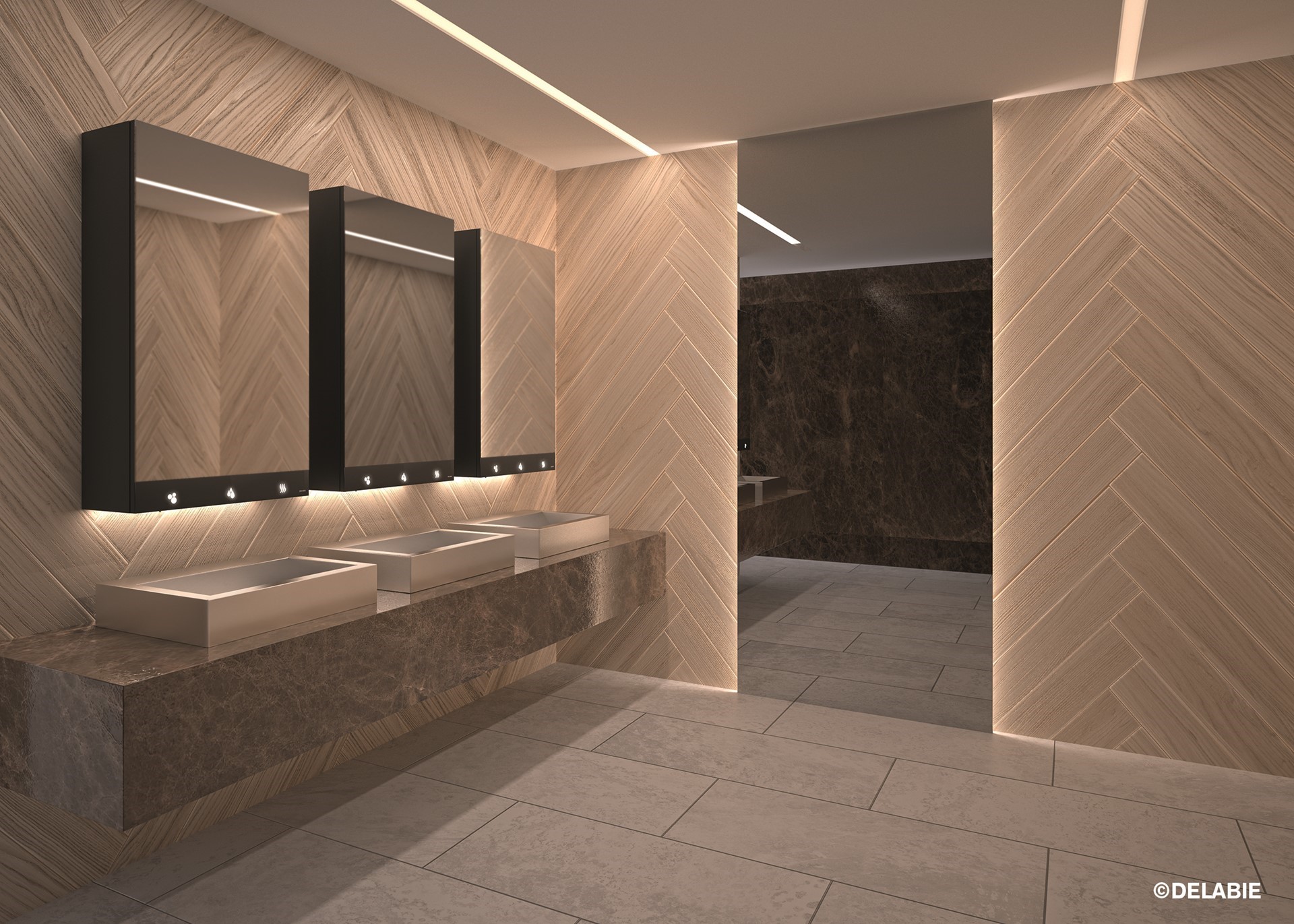 Ook de introductie van een assortiment 4-in-1-spiegelkasten is nieuw. De spiegelkasten combineren functionaliteit met esthetiek: er is de elegante matzwarte afwerking en de spiegel en zeepverdeler, kraan en handendroger met automatische detectie garanderen optimale hygiëne.