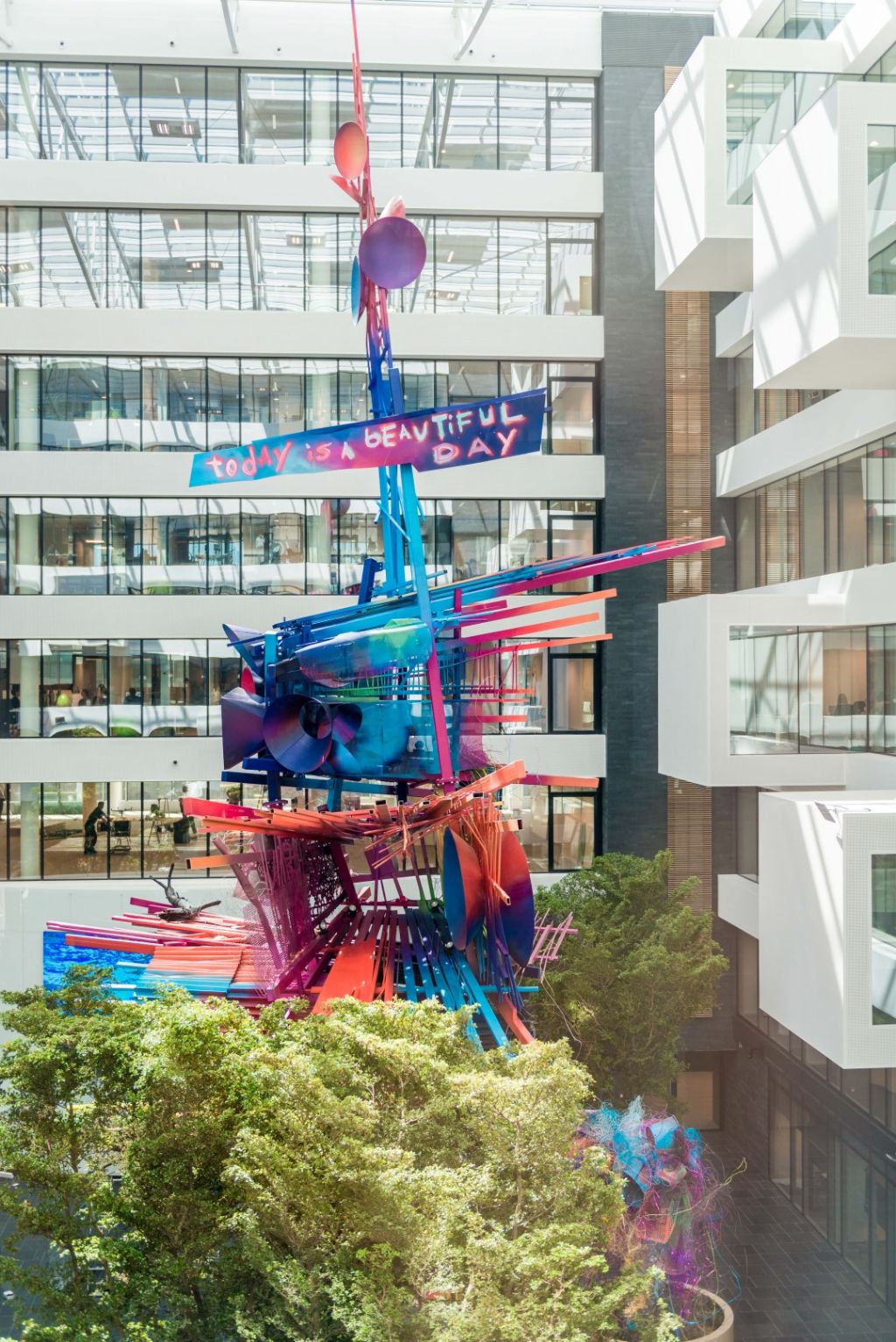 Blikvanger bij de opening was Stilthouse, een werk van Arne Quinze, dat voortaan in de lobby van het nieuwe gebouw prijkt. Piet Vandendriessche: “Kunst vertrekt vanuit een engagement, net als wij ons engagement in de maatschappij willen opnemen. We herkennen ons in de thema’s waarrond Arne Quinze werkt: dialoog, duurzaamheid, diversiteit. Bovendien zorgt het voor een inspirerend kader voor onze medewerkers, klanten en bezoekers.”
