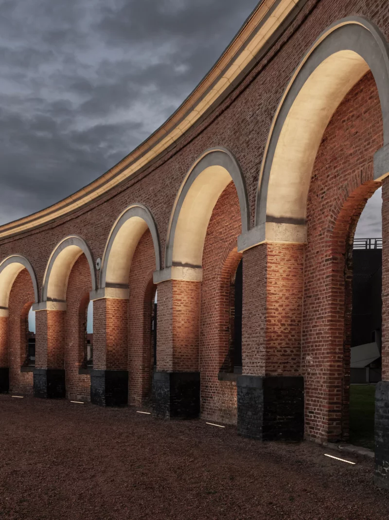 Delta Light kreeg de kans om een tijdelijke verlichtingsinstallatie te installeren in Le Grand-Hornu, een UNESCO erfgoed met een diepe historische weerklank. De aanpak van Delta Light was niet alleen om te verlichten, maar ook om de architectuur nieuw leven in te blazen en het groen eromheen te accentueren door middel van een zorgvuldig uitgewerkt verlichtingsontwerp, en dat alles met behoud van het rijke historische karakter.