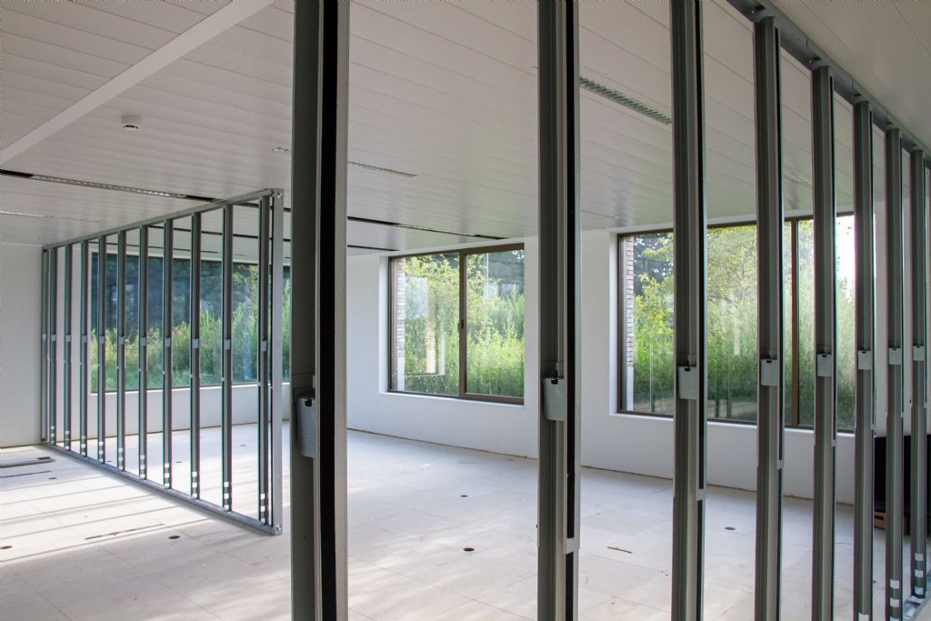 Met JUUNOO-wanden zijn kantoorruimtes namelijk snel en makkelijk in te delen. Een JUUNOO-wand is zeven keer sneller geplaatst dan een klassieke geschilderde niet-structurele binnenwand dankzij de uitschuifbare modules en beplating met kliksysteem. De panelen worden bevestigd met herbruikbare JUUNOO-blue tape of met schroeven.