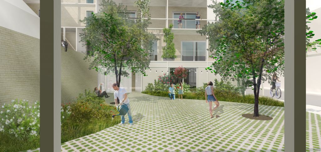 Grootste troef van het project is volgens DENC!-STUDIO de afgemeten transparantie die voor een gefilterde blik richting de collectieve binnentuin zorgt. Die aanpak is enerzijds een meerwaarde voor de nabije buren en anderzijds positief voor de ruimtelijke condities van de besloten woonruimte, die voorheen het uitzicht had van een visueel afgesloten bergplaats. Daarnaast worden de binnengevels rond de tuin niet opgevat als gewone achtergevels, maar als volwaardige façades.