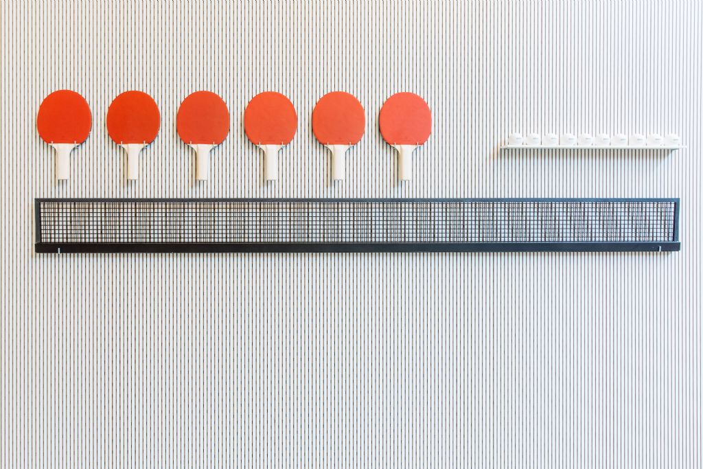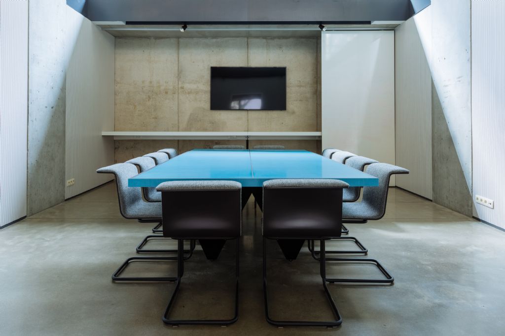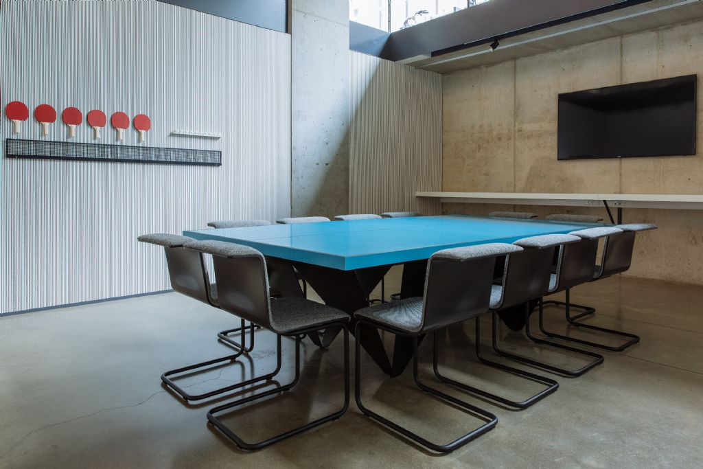 Deri3 ontwierp op vraag van Designcenter De Winkelhaak een multifunctionele vergadertafel voor hun vergaderruimtes. Die vraag kwam er na een recente samenwerking tussen Deri3 en King of Pong. Samen ontwierpen ze enkele speelse pingpongtafels.