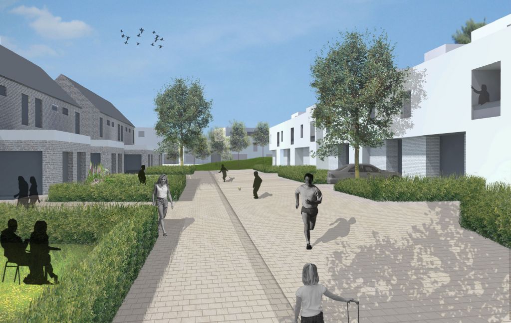 Het gegeven dat er terreinwerken dienen te gebeuren, biedt de mogelijkheid een warmtenet aan te leggen. Door ondergrondse voorgeïsoleerde leidingen wordt warmte tot bij de eindverbruiker gebracht. Deze eindgebruiker is gefaciliteerd met een warmtewisselaar voor rechtstreeks gebruik van warm water voor ruimteverwarming en sanitair.