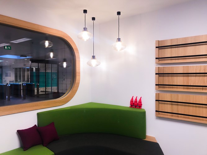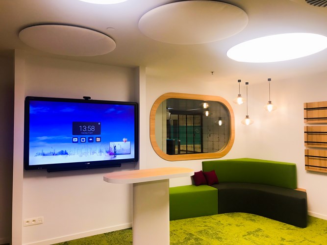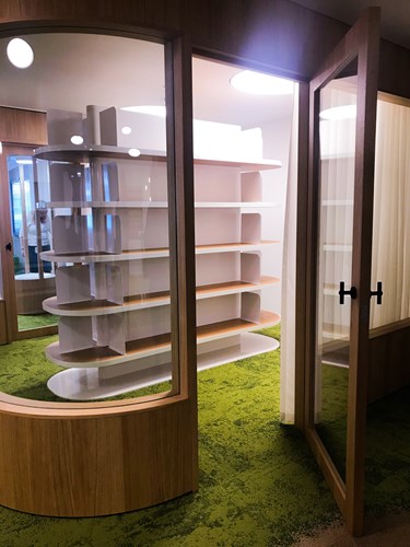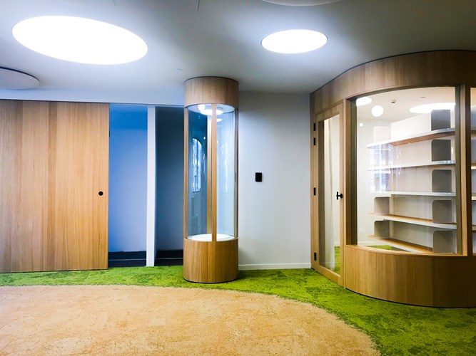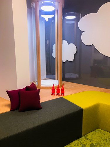 Het manschap ruilde de primaire kleuren in voor warme en frisse tinten. Verder werden er een aantal belangrijke features geïmplementeerd. Denk daarbij aan een mini-bibliotheek vervaardigt uit hout en gebogen glazen ruiten. Ook een groen designer tapijt valt meteen in het oog. Kortom: een multifunctioneel kleurenpalet.