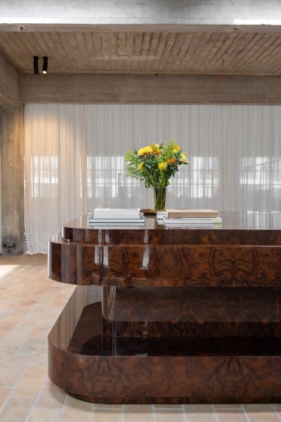 De keuze voor deze locatie was gebaseerd op de ligging, de grootte en de charme van het oorspronkelijke interieur. Vander Velpen koos voor een vintage-geïnspireerd interieur waarin diverse originele accenten bewaard zijn gebleven. Het resultaat is een interieur dat het contrast benadrukt tussen industriële stijl en luxueuze elementen. Bronzen en roestaccenten komen terug in de zitbanken, in de grote houten tafel in de kantoorruimte, en in de verlichting.