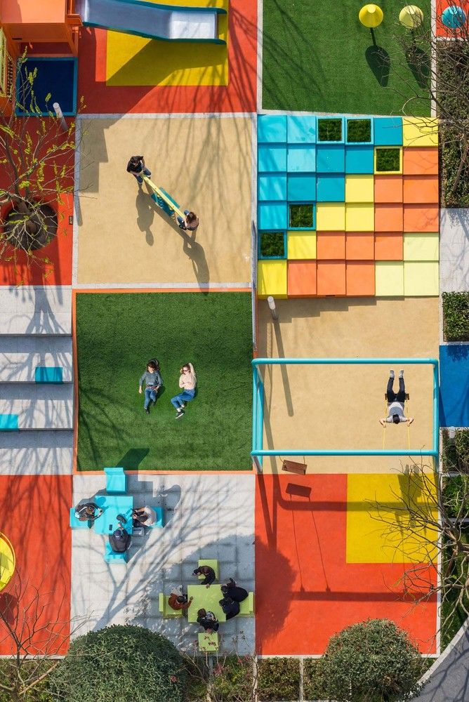 Een pixel is een punt met eigen RGB- of CMYK-kleurinformatie. Talrijke pixels vormen samen een digitaal beeld. Dat idee heeft het architectenbureau 100architects uit Shanghai gespiegeld aan een openbare ruimte in Mianyang, China. Door de combinatie van onafhankelijke pixels wilde 100architects een multifunctionele openbare ruimte creëren. Elk deeltje heeft een eigen functie. Toch zijn ze samen een zeer opvallende, speelse en multifunctionele openbare ruimte.