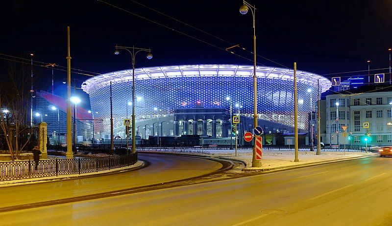 Ekaterinburg is de vierde grootste stad van Rusland en is gelegen op de geografische grens tussen Europa en Azië, aan de voet van het Oeral-gebergte. Na de nominatie als gaststad van het WK, was Ekaterinburg genoodzaakt om het stadion te voorzien voor minimum 35.000 toeschouwers, zoals voorgeschreven door FIFA. Om aan deze eis te voldoen, reiken de tijdelijke extra zitplaatsen tot buiten het stadion, achter beide goals.