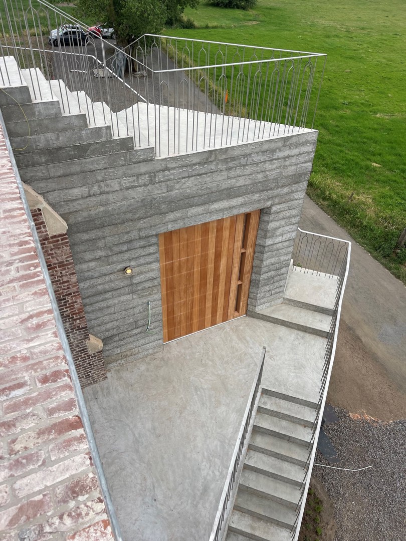 Al is de vernieuwde buitenschil volgens DMOA Architecten wel gebouwd om nog eens minstens 150 jaar mee te gaan. Om die reden werd de aanbouw die ook fungeert als trap naar het dakterras een solide betonstructuur. Een staalskelet – die demonteerbaar uit te voeren valt – was volgens het architectenbureau “conceptueel echt geen optie”.