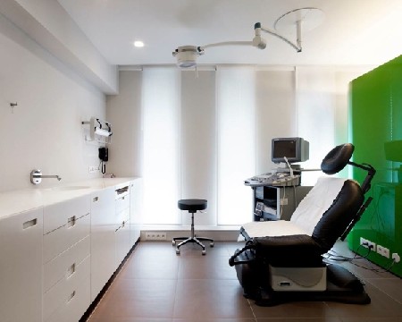 In augustus 2008 kreeg DMOA de opdracht voor de verbouwing van een appartement tot gynaecologenpraktijk. Het uitgebreid programma - 2 praktijkruimtes, wachtzaal voor 20 patiënten, secretariaat, intake, monitorruimte, kitchenette - moest georganiseerd worden tot een goed werkend geheel. Functionaliteit, logische circulatie, esthetiek en sfeer staan centraal. Een belangrijk deelaspect van de opdracht was de tijdspanne van de verbouwingswerken. Alles moest binnen de 2 maanden gerealiseerd worden. Een goede voorbereiding en een gemotiveerde aannemer maakten dit mogelijk zonder in te boeten aan de hoge graad van afwerking.