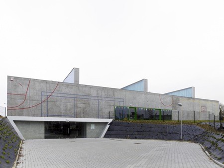 De verzonken inplanting in het talud en de soberheid, eenvoud en duurzaamheid van het gebouw kunnen als belangrijkste troeven naar voren geschoven worden. Het is ook een doe-gebouw geworden waardoor de buitenzijde van het gebouw voor sportdoeleinden kan gebruikt worden.