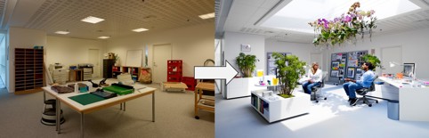 In het voorbeeld hier gaat men de uitdaging aan een compacte, smalle rijwoning te creëren met een grote diepte: bv 6mx15m. Men wil overal daglicht, zeker ook in het midden van die diepte. Wat men zeker niet wil is een uitbouw die licht wegneemt van de ruimte ernaast.