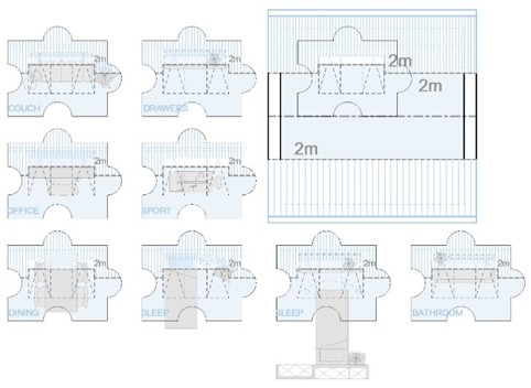 In die ontstane breedte is nu veel meer mogelijk: functies die men anders niet zou kunnen voorzien: men heeft ruimte om een eettafel met stoelen aan beide kanten te voorzien, of een bureau, of een zithoek te organiseren. Plots heeft men de flexibiliteit om een bed op verschillende manieren te plaatsen. Zie hoe men plots het bed dwars op het raam kan plaatsen met zicht op het raam en toch nog ruimte heeft om aan de voet van het bed nog circulatieruimte te hebben.