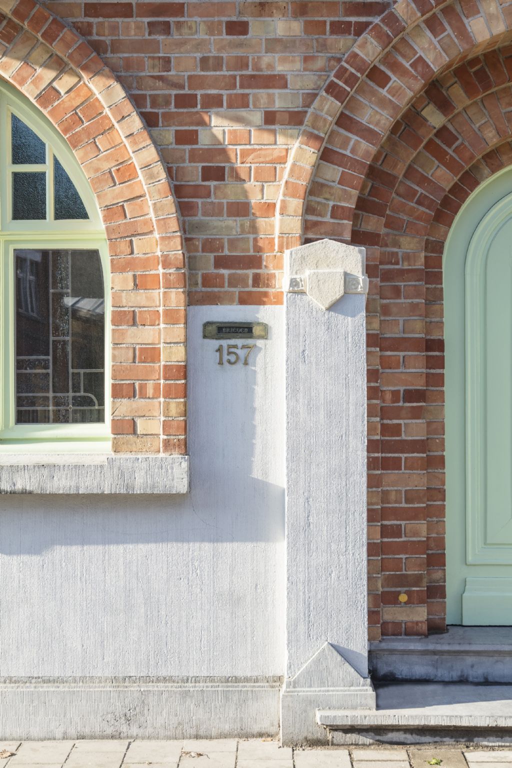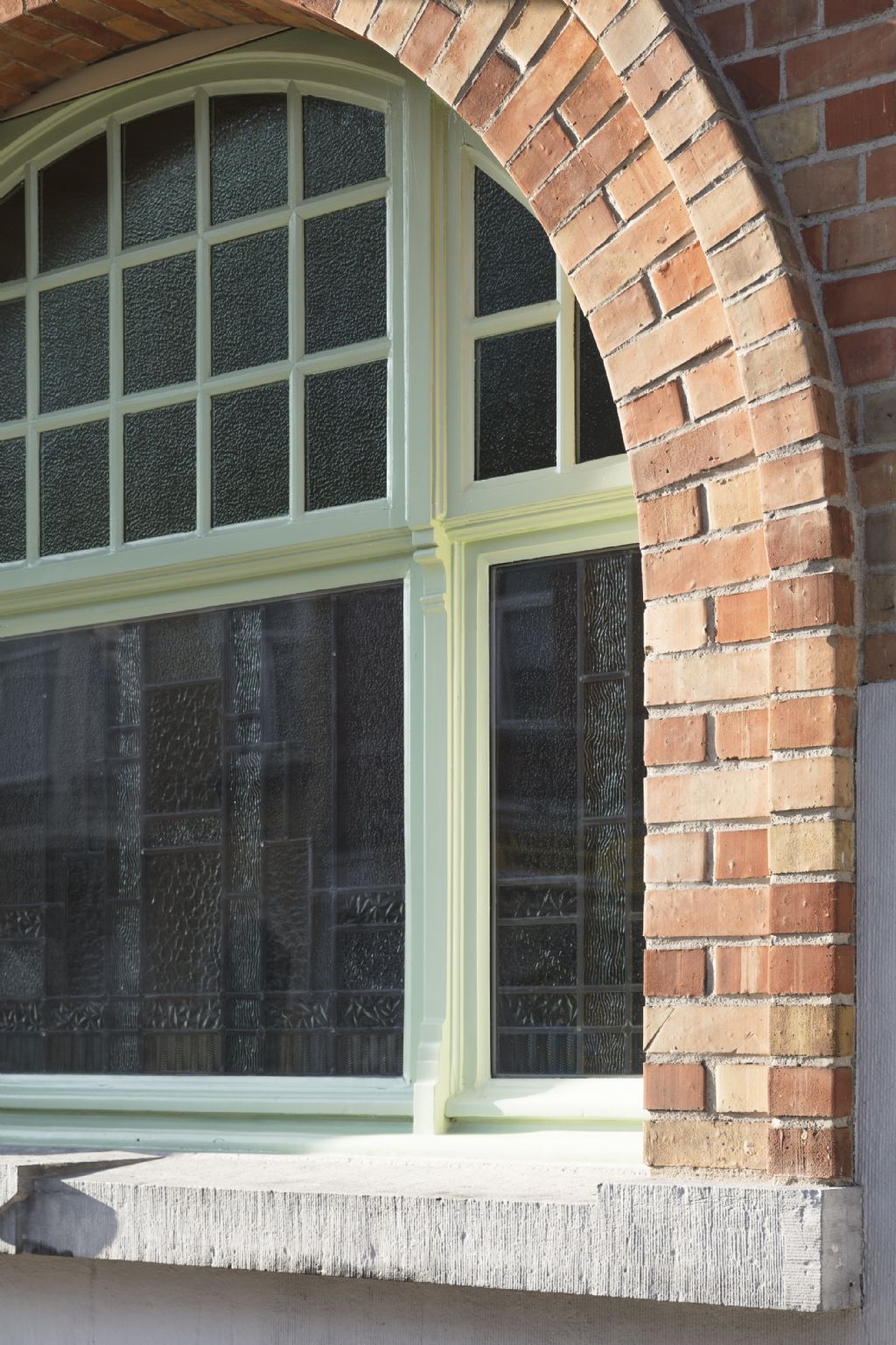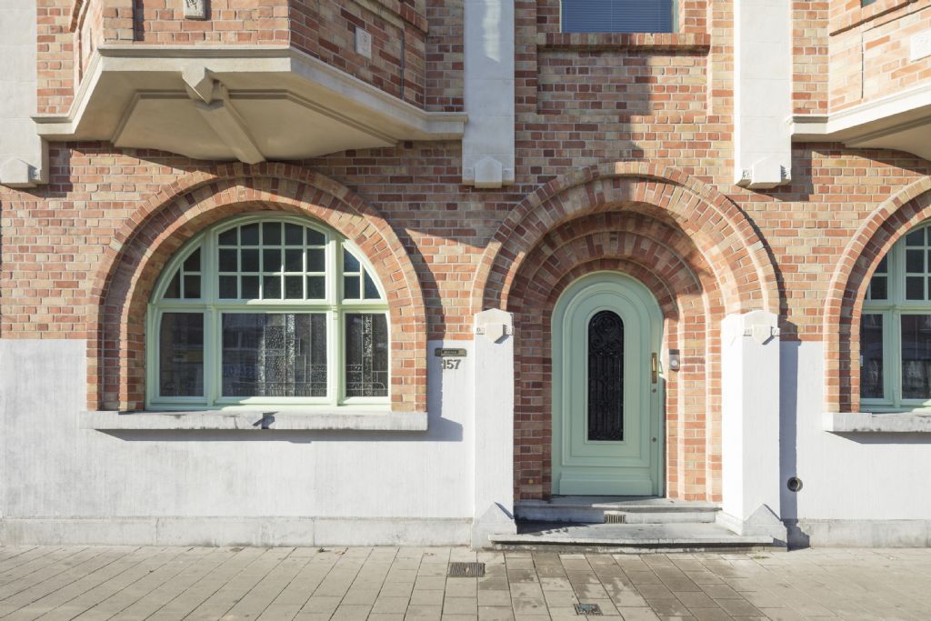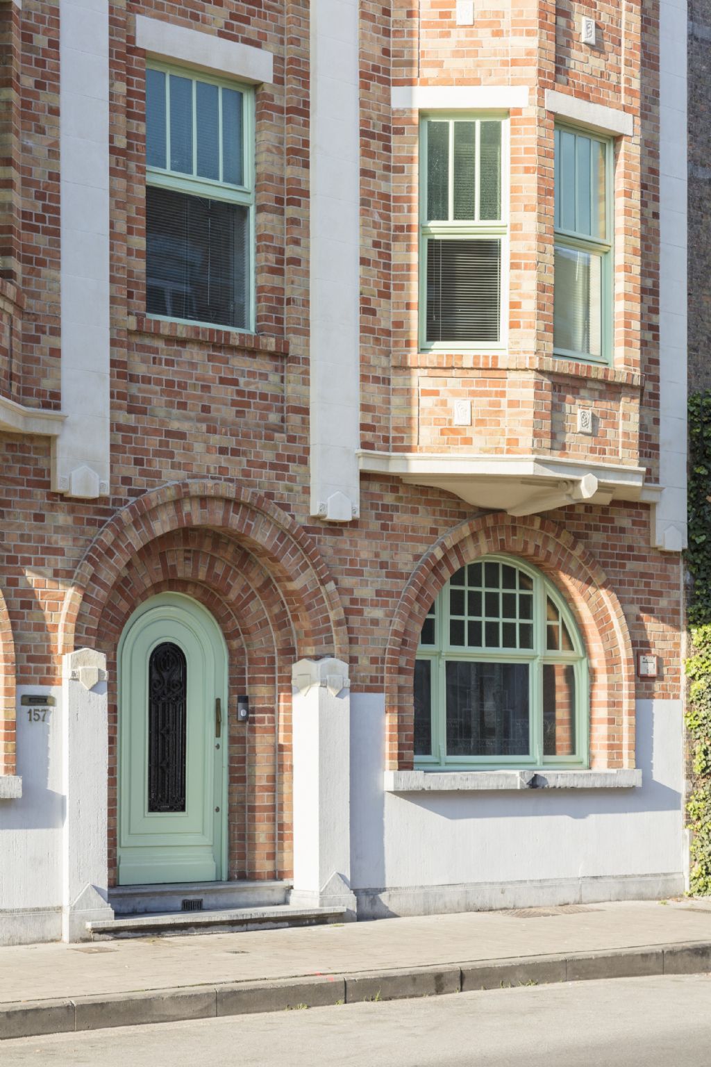 De voorgevel werd integraal gerestaureerd door middel van verwijderen oude verf, stoomreiniging, scheur- en barstherstel, zandstralen dorpels en restauratie van ornamenten. De ramen werden gerestaureerd -met inbegrip van het glas-in-lood- voorzien van dubbele beglazing en in het originele kleur geschilderd. De verschillende originele onderdelen van het bestaande en te behouden interieur zoals, binnenschrijnwerk, trap, terrazzo-vloer met mozaïekafboording, houten plankenvloeren, houten ornamenten, originele gietijzeren radiatoren,… bleven behouden en werden grondig gerestaureerd.