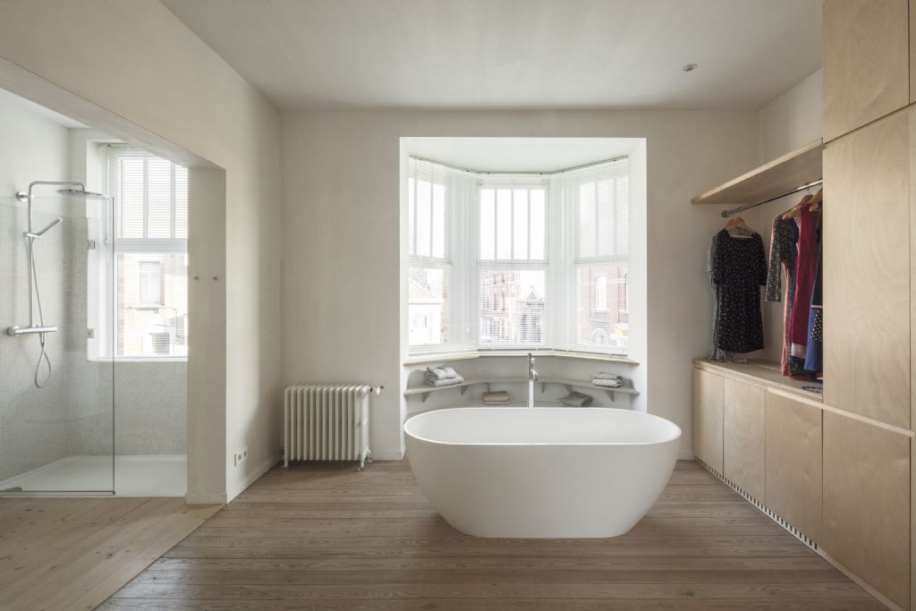 De verschillende detailleringen van voor- en achtergevel zorgen ervoor dat de woning zich inschrijft in twee totaal verschillende situaties – enerzijds die van de drukke Tolhuislaan, waar de woning zich statig gedraagt en anderzijds de context van de rustige binnenzijde van het bouwblok. Hier ontstaat een ommuurde groene oase. Door de detaillering van het interieur worden deze twee contrasterende omgevingen karaktervol met elkaar verbonden, zonder het onderscheid tussen oud en nieuw te verbergen of te ontkennen. De stedenbouwkundige impact komt voort uit en is voelbaar tot in de detaillering.