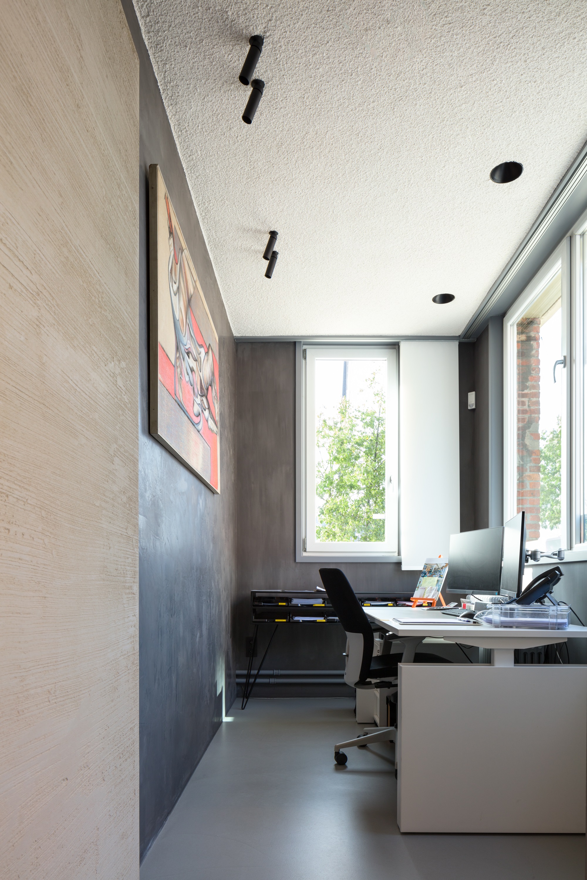 Het stadsbestuur bleek het idee genegen en Van Cauwelaert haalde een concessie voor 5 jaar binnen. In geen tijd vond hij gelijkgestemde zielen die het pand nieuw leven inbliezen: Print Acoustics leverde houten wanden en akoestische kastfronten, Zumi installeerde akoestisch absorberende verlichting, XinniX plaatste akoestisch isolerende binnendeuren, Asona zorgde voor akoestisch absorberende naadloze plafonds en Sika stond in voor de geluidsabsorberende gietvloer. Schilder- en vloerwerken werden uitgevoerd door Stoopen & Meeus, Floorcouture en Deco-son. “We zijn met de vijf partners actief binnen hetzelfde thema akoestiek, maar versterken elkaar door complementariteit. Daarenboven krijgt de bezoekers rechtstreeks informatie van de fabrikant en moet hij niet eerst via een verdeler gaan.”