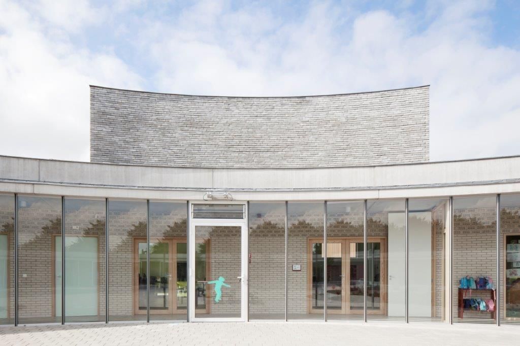 ‘Most things look better when you put them in a circle’, vinden ze bij LOW architecten en studiebureau ABETEC. Basisschool Merlijn in Tongeren is het perfecte bewijs van deze stelling. Bovendien sluit de volumetrie van het complex aan bij de beleving van de aanwezige kinderen, die in de schoot van de ‘vloeiende cirkel met strakke rechthoek’ uitgroeien tot vastberaden jongeren.