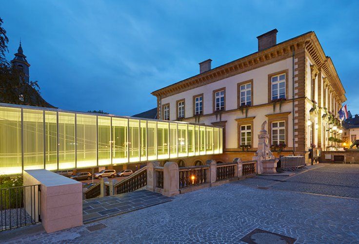 In juni 2014 was hij eindelijk klaar, de glazen doorgang die het Luxemburgse stadhuis verbindt met de 18de-eeuwse huizen waarin de dienst Bevolking zit. Het ambitieuze ontwerp van de architecten Steinmetz-Demeyer kon dan ook niet zomaar in een-twee-drie uitgevoerd worden. De doorgang herinnert enerzijds aan een soort kronkelende regenworm en anderzijds aan een aangespoelde walvis. Dat komt onder andere door de ‘zwelling’ die twee derden van de passerelle inneemt. Ney & Partners zorgde voor de stabiliteit van dit project.