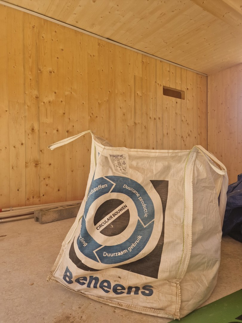 Het project is circulair om meerdere redenen. Zo wordt de nieuwbouw een CLT-constructie die zolang ze er staat 450 ton CO2-equivalent zal capteren. De bakstenen voor de afwerking zijn afkomstig uit de noodzakelijke sloop van het gebouw dat wordt vervangen, wat dan weer een besparing van 50 ton CO2-equivalent betekent – en zelfs meer wanneer niet enkel naar de uitgespaarde productie van nieuwe bakstenen maar ook naar het transport van die bakstenen gekeken wordt. Ook het sanitair, zo’n 300 m² cementtegels – gedemonteerd door een plaatselijke jeugdbeweging – en de brandtrappen van het voormalige gebouw worden hergebruikt voor de nieuwbouw.