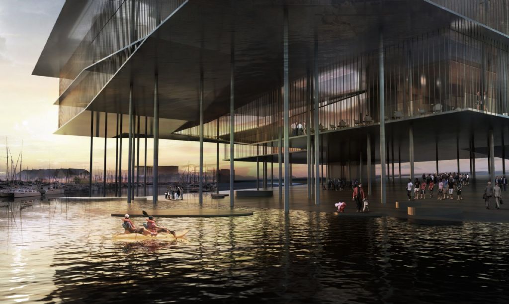 De houten palen refereren naar de historische pieren en de helling zet het water extra in de kijker bij eb en vloed. De keuze voor veel glas zorgt dan weer voor een prachtig uitzicht en een intieme connectie met de Waddenzee, die sinds 2009 op de UNESCO-erfgoedlijst staat. Binnenin zijn er ruimtes voorzien voor tijdelijke en permanente tentoonstellingen en op de tweede verdieping kom je via een hellend vlak terecht in een belevenisruimte.