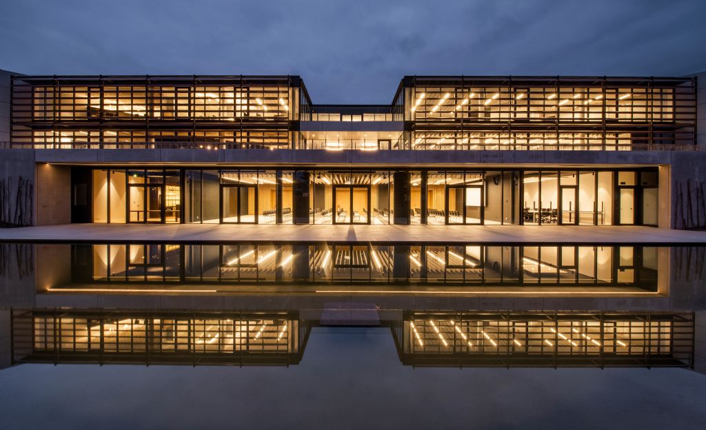 Het compacte, driehoekige gebouw benut de vorm van het perceel maximaal. Het ontwerp speelt in op de zuidwestelijke oriëntatie en het aanwezige reliëf. De constructie is als het ware ingebed in een helling en daardoor verankerd in zijn omgeving. In dit project voeren de binnen- en buitenkant een dialoog. De natuur en planten zijn sterk aanwezig. Dat is niet onlogisch, aangezien De Ceuster actief is in de tuinbouwsector. De grote glazen gevel brengt de natuur van buiten naar binnen en laat een zee van licht toe. Die glaspartij vormt ook een verbinding met de groene heuvels, de vijver en de beplanting. Om het comfort te behouden, is de ruimte voorzien van zonlicht gestuurde lamellen die de warmte buiten houden.