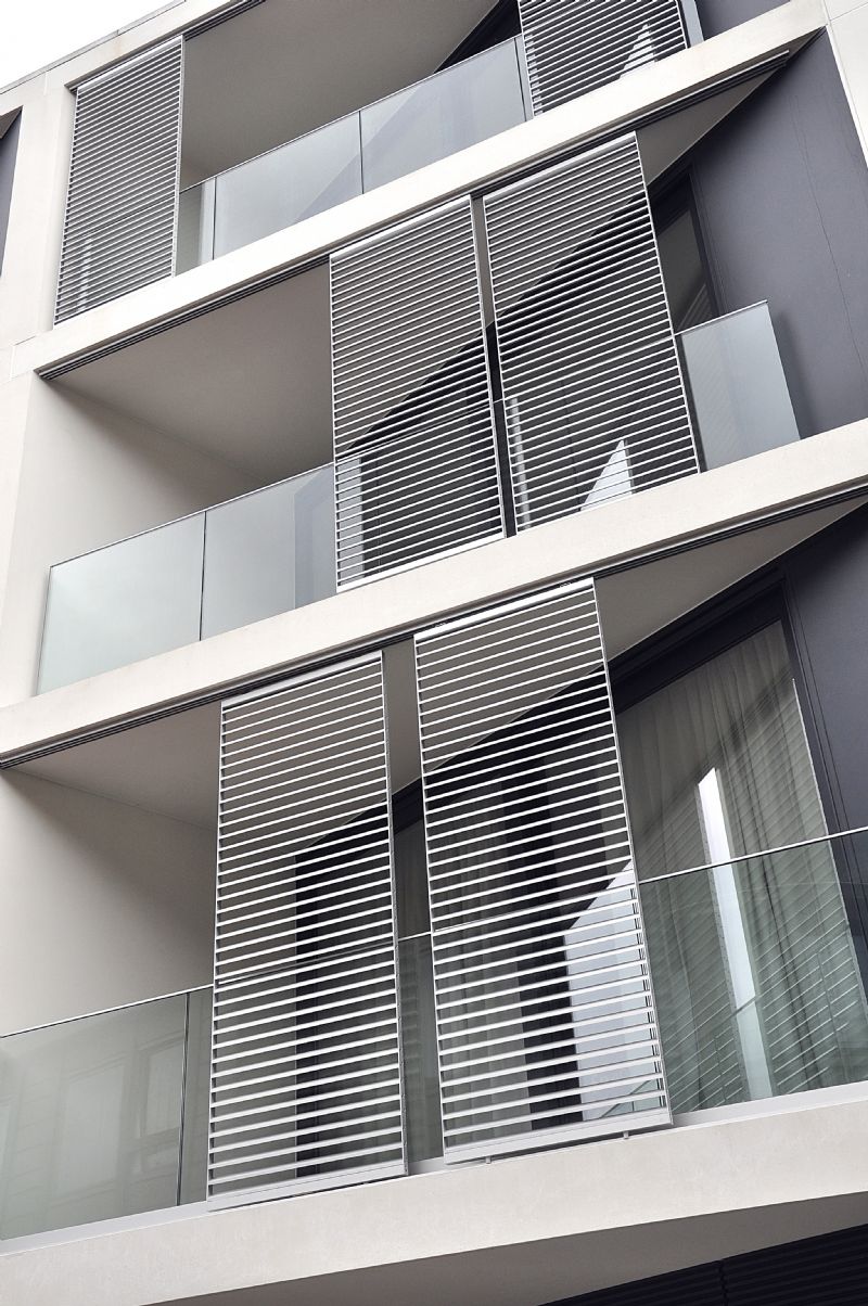 Ook op esthetisch vlak geeft DucoSlide een meerwaarde aan de gevel van het gebouw. “Om het strenge karakter van de voorgevel af te zwakken, werd er geopteerd om te werken met schuifpanelen. Het slanke en stevige kaderprofiel, het lichte gewicht, de fijne lamellen en de aluminium kleur van de panelen die perfect samengaat met de kleur van het gebouw maakt van de meergezinswoning een blikvanger die niemand onberoerd laat. Het nieuwbouwproject in de binnenstad van Sint-Niklaas werd mede dankzij Duco een architecturaal kunststukje van de bovenste plank, en biedt alle bewoners een optimaal comfort alsook een gezond en energiezuinig binnenklimaat”, besluit het architectenbureau.