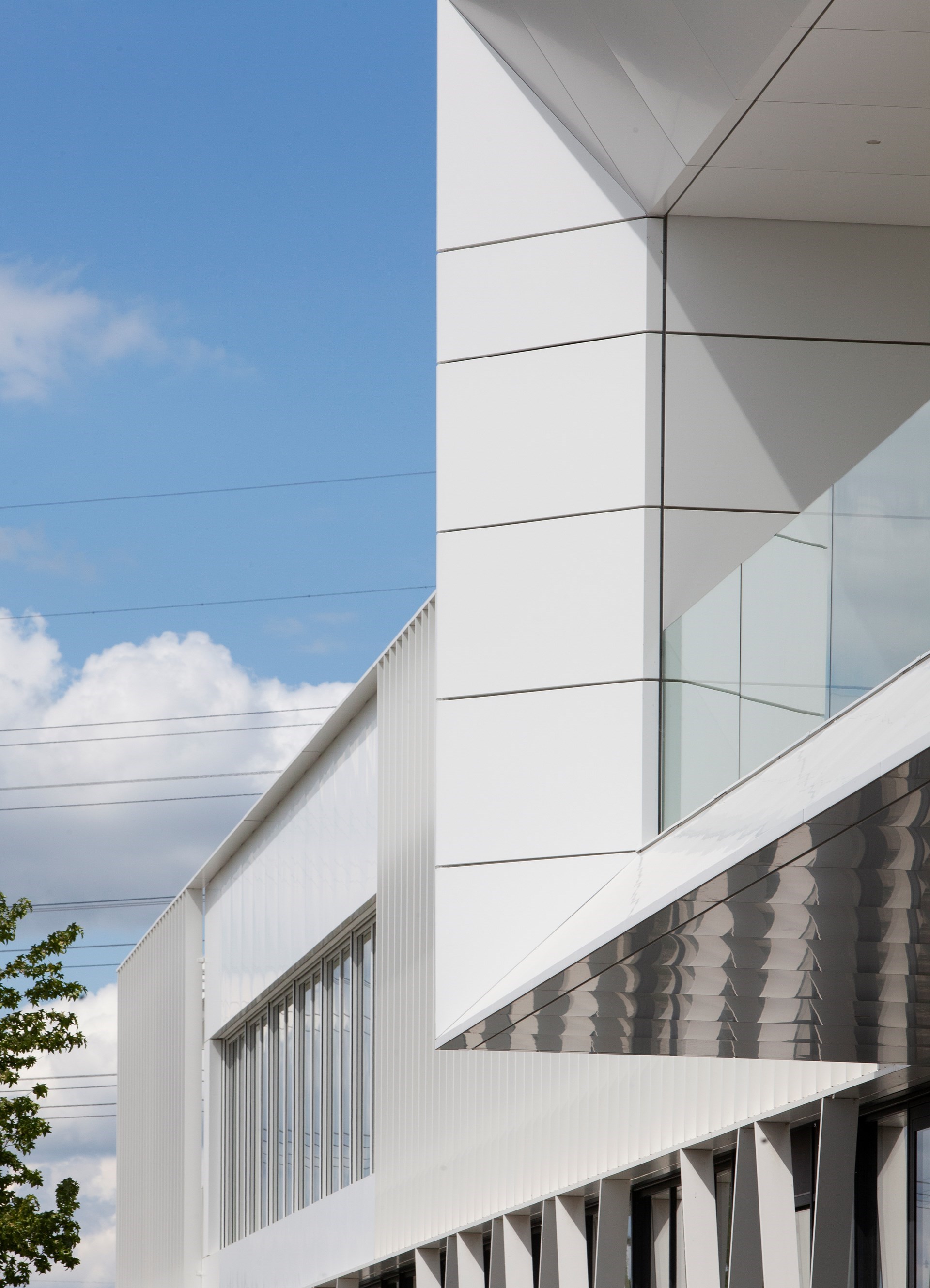 Uit esthetische overwegingen en omwille van de organisatie van het terrein werd het nieuwe gebouw aan de Mondeolaanzijde geplaatst. Esthetiek speelde ook een cruciale rol bij de keuze van de gevelmaterialen voor het kantoorgebouw.