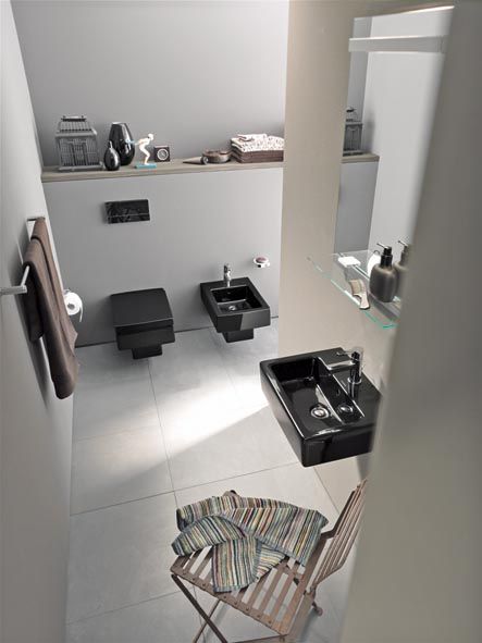 Edele zwarte lakoppervlakken van de PuraVida-meubels harmoniëren goed met wit keramiek. PuraVida kenmerkt zich door een zachte vormenspraak en elegantie. Keramiek kleedt zich weliswaar graag in puur wit maar straalt in zwart ook een heel individueel karakter uit. Als enige badserie van Duravit is Vero als wastafel, wc en bidet verkrijgbaar in een zwarte outfit. In zijn onverwisselbaar design met de hoekige basisvorm verbindt Vero Black purisme met een levendige esthetica.