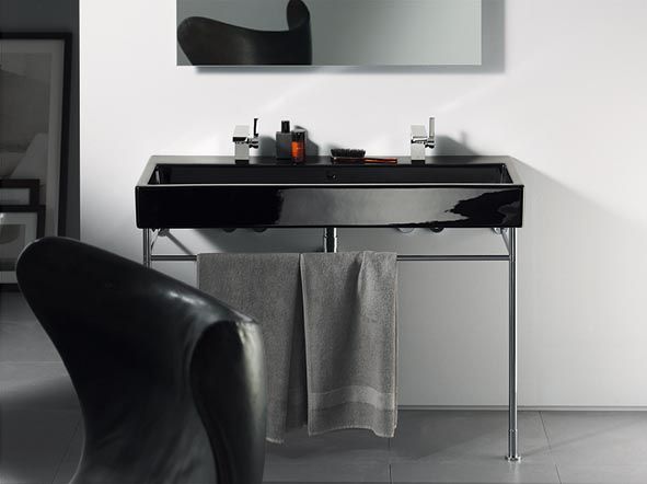 Met zijn meubelserie interpreteert Philippe Starck het licht-donker contrast dat volledig aansluit bij een puristische esthetica. De lage kasten in hoogglans zwart met royale lades laten zich combineren met de waskommen uit de nieuwe Starck 2-serie. De zwarte achtergrond accentueert de organische vormgeving van de nieuwe Starck 2-modellen en legt de focus op het vloeiende silhouet.